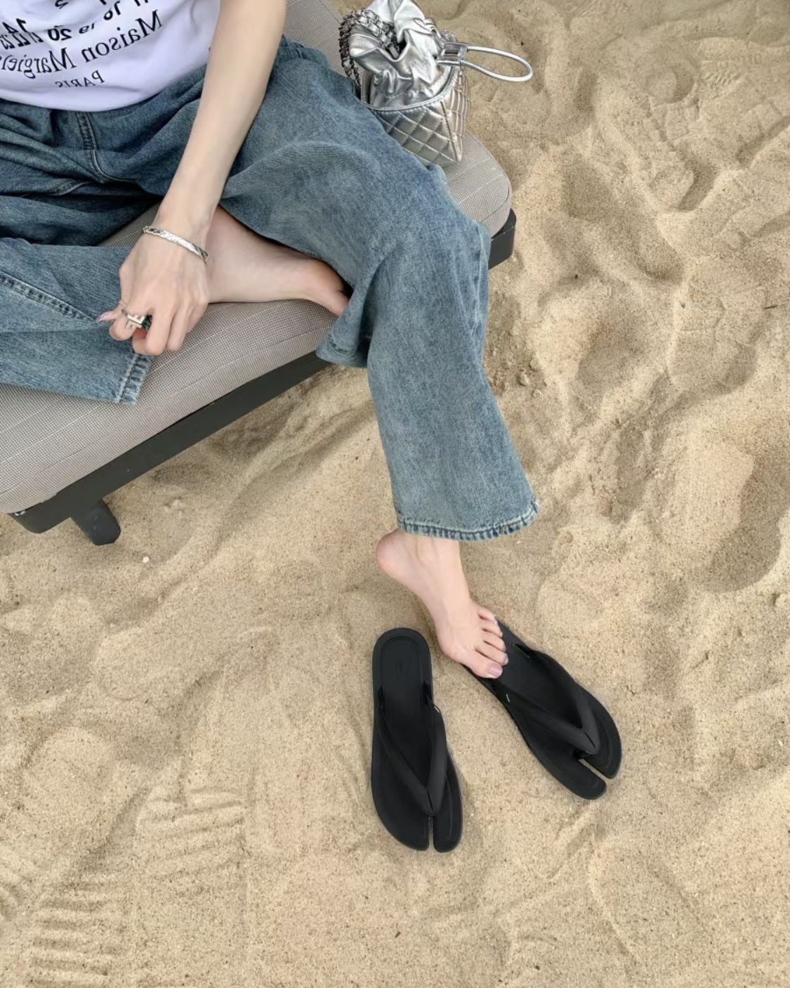 Mm6 Flip Flops Mona Niche Advanced Sense Pig's Foot Split-toe 캐주얼 플랫 비치 플립 플롭 여성 아우터 웨어 인
