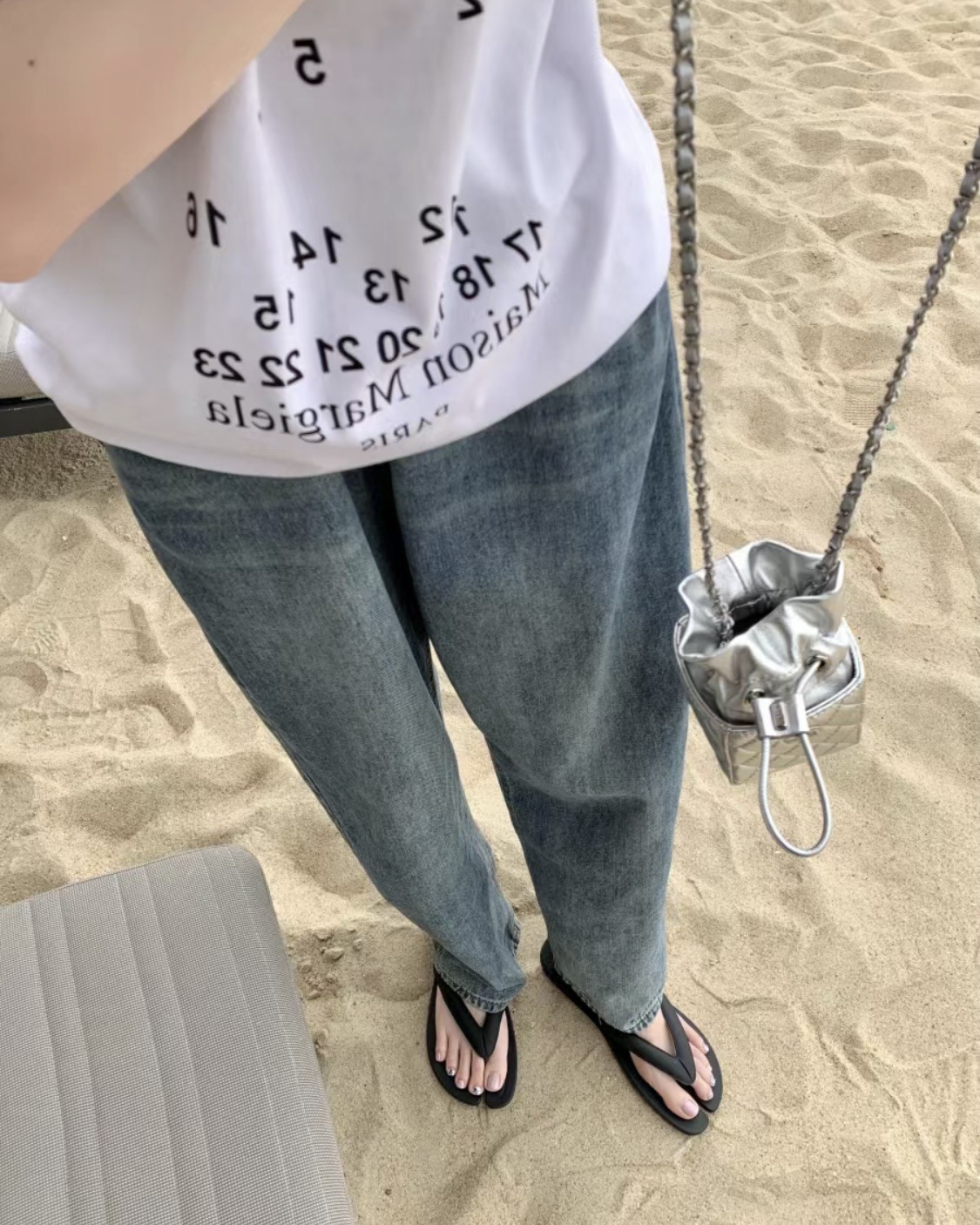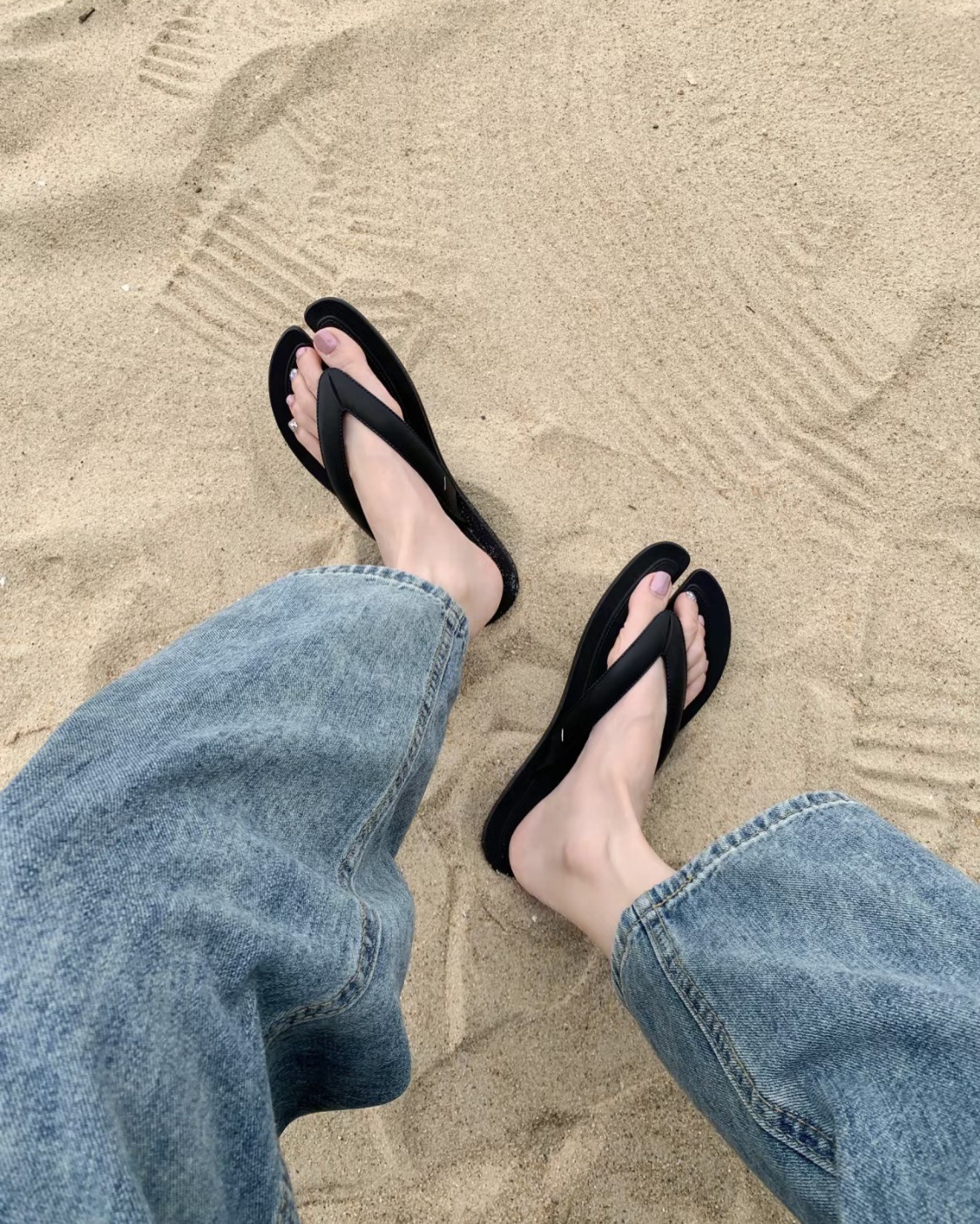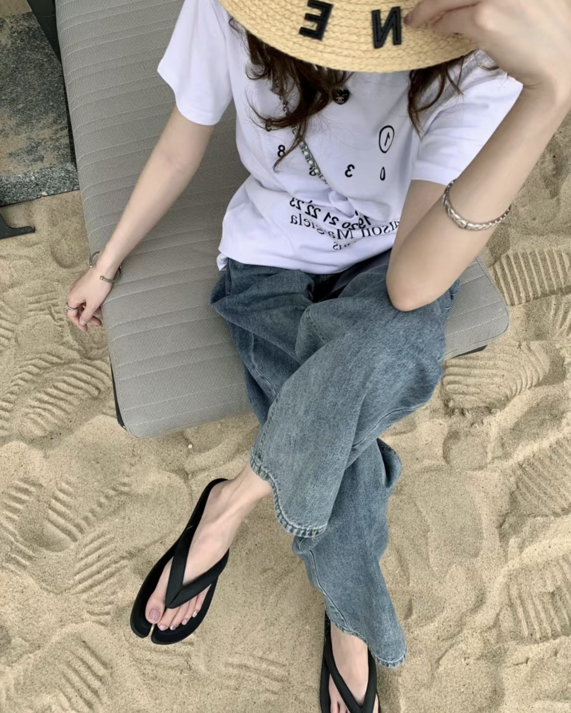 Mm6 Flip Flops Mona Niche Advanced Sense Pig's Foot Split-toe 캐주얼 플랫 비치 플립 플롭 여성 아우터 웨어 인스토어 가기