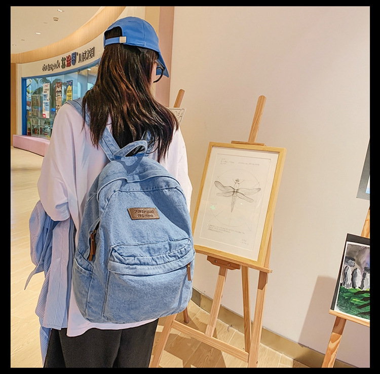 국경을 넘나 드는 신형 스쿨백 고등학교 유행 대용량 중학생 내구재 한국 캐주얼 남녀 책가방 데님스토어 가기