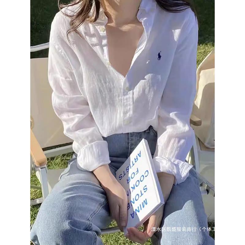 프랑스 외국 싱글 테일 카고 테일 싱글 컷 라벨 리넨 화이트 셔츠 여성의 이른 가을 느슨한 캐주얼 코튼 리넨 롱 슬리브 탑스토어 가기