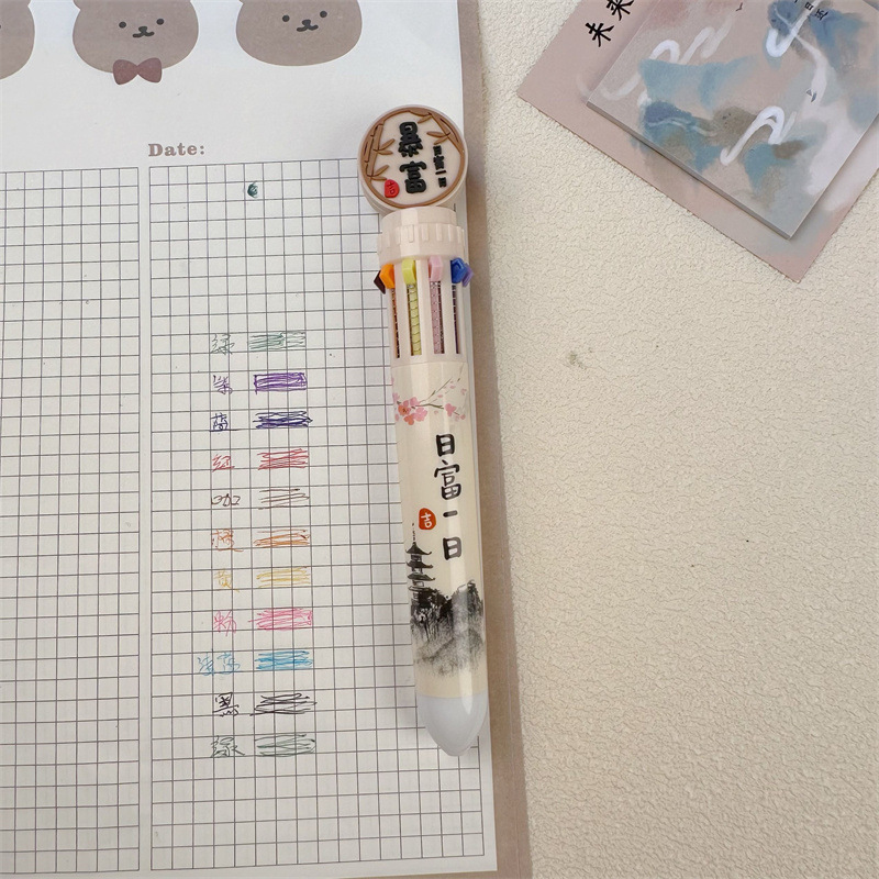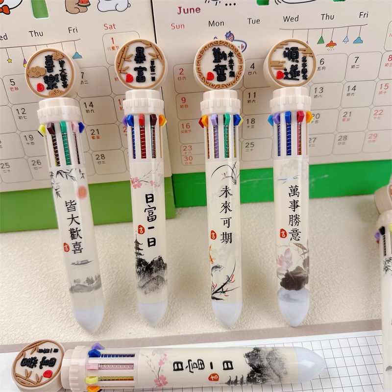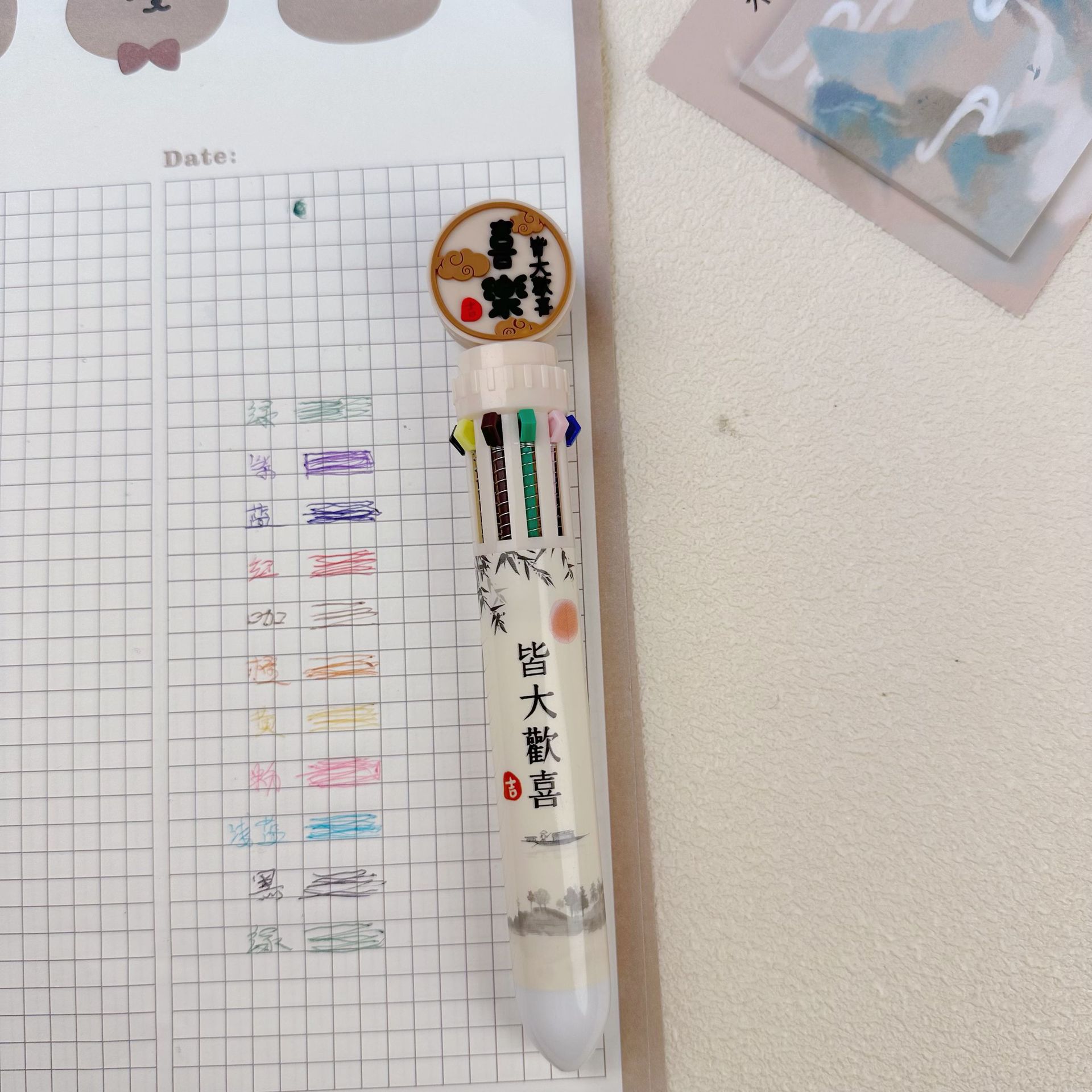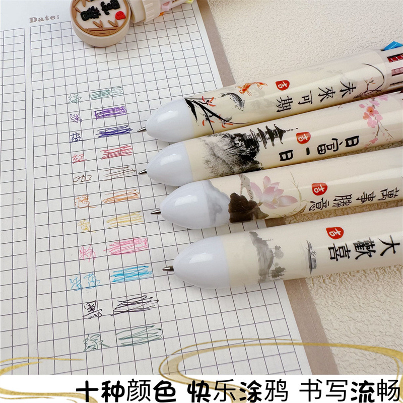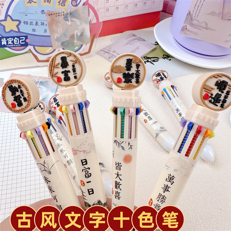 창조적 인 골동품 텍스트 10 색 펜 높은 가치의 볼펜 학생 10 대 1 색 손 계정 멀티 컬러 펜 0.5스토어 가기