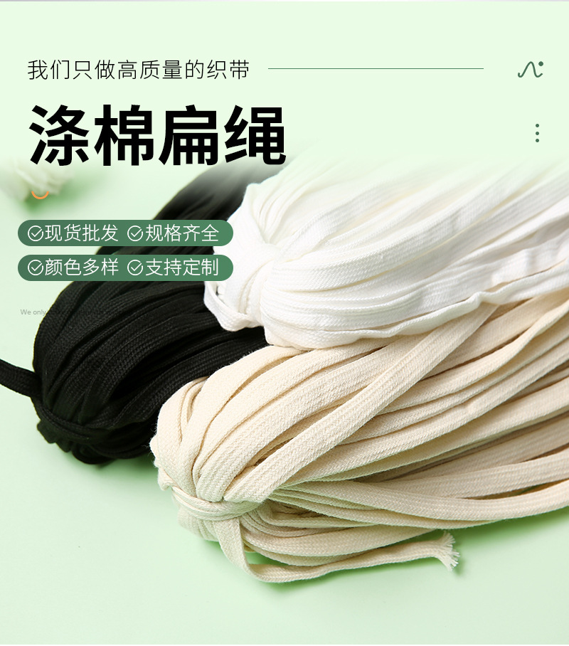 1-1.5cm 중공 면화 플랫 로프 흑백 평면 로프 스웨터 모자 로프 스포츠 바지 허리 로프 드로 스트링 의류 로프 도매스토어 가기