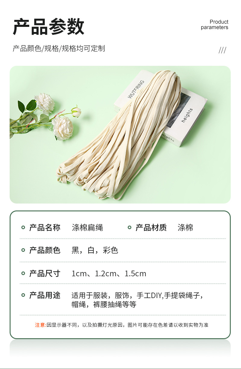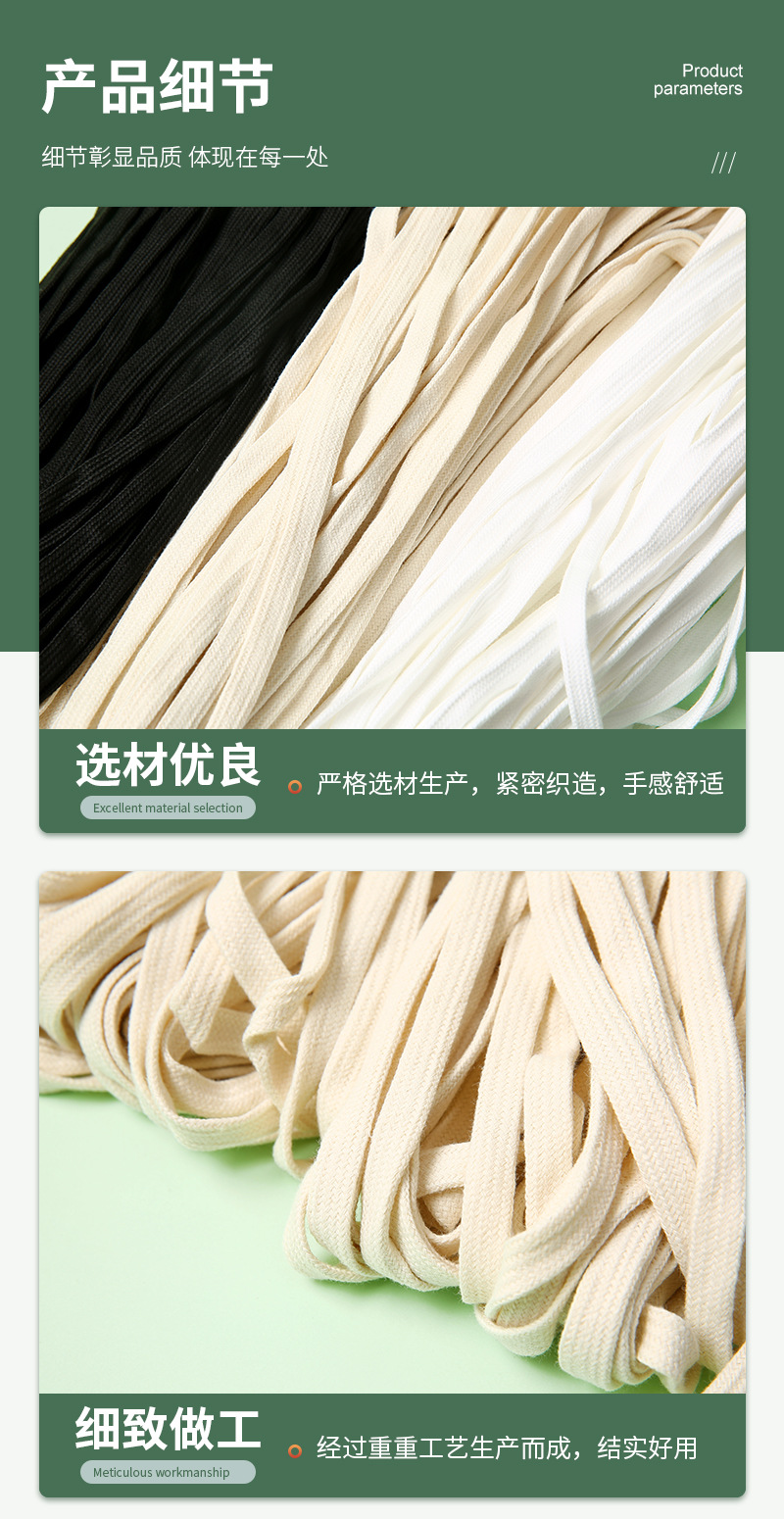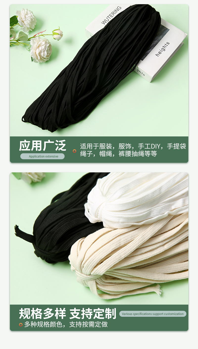 1-1.5cm 중공 면화 플랫 로프 흑백 평면 로프 스웨터 모자 로프 스포츠 바지 허리 로프 드로 스트링 의류 로프 도매