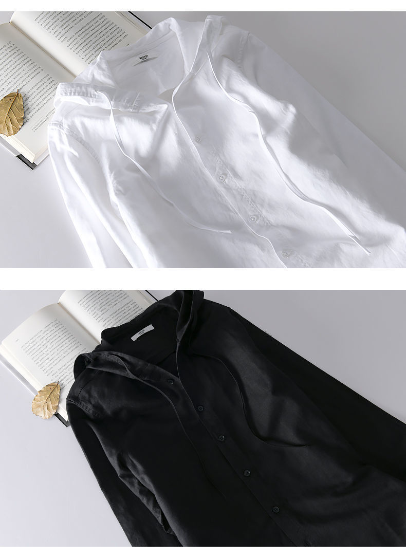 봄과 여름 새로운 남성과 여성의 느슨한 청소년 패션 면화와 리넨 선스크린 셔츠 후드 긴 소매 솔리드 컬러 리넨 셔츠 트렌디