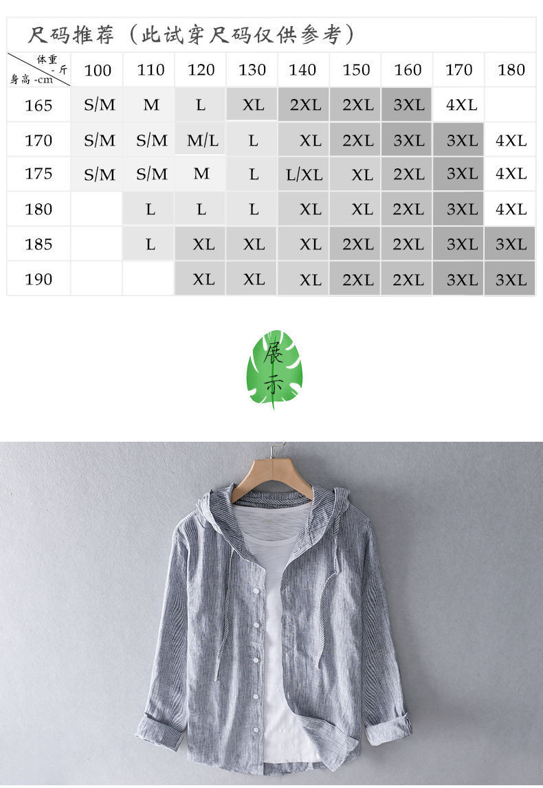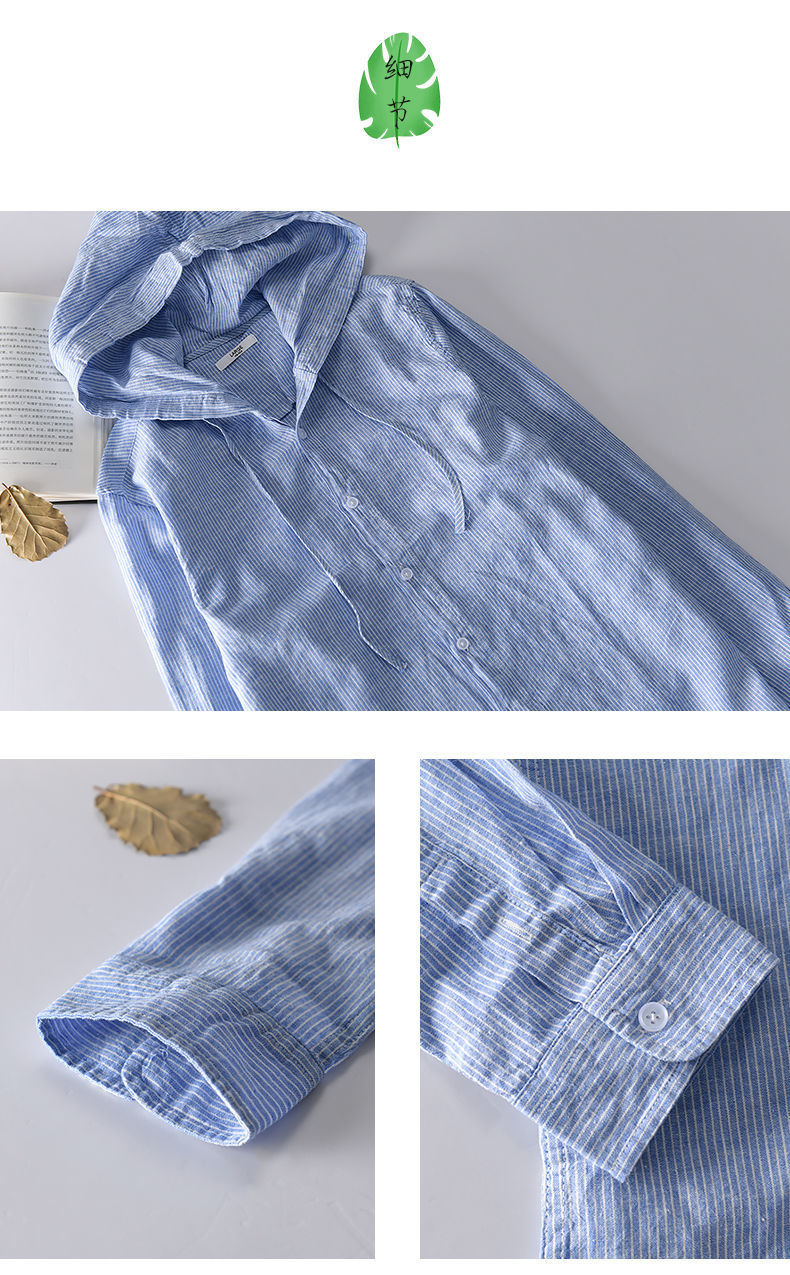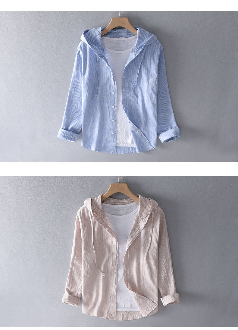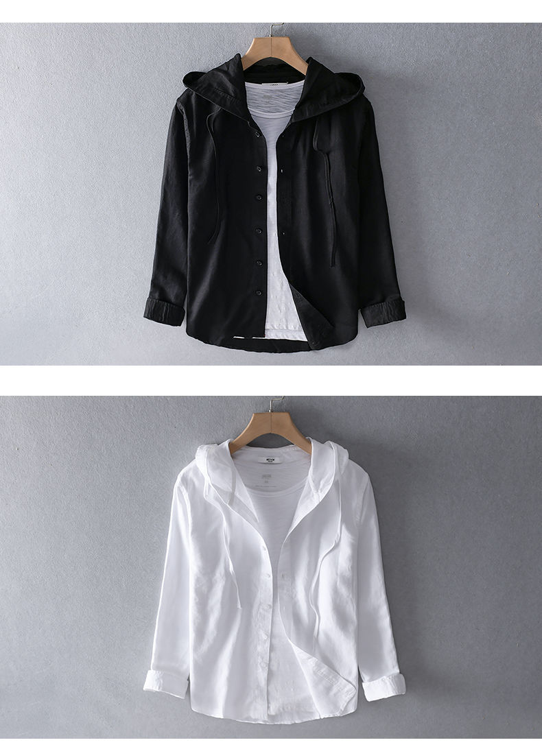 봄과 여름 새로운 남성과 여성의 느슨한 청소년 패션 면화와 리넨 선스크린 셔츠 후드 긴 소매 솔리드 컬러 리넨 셔츠 트렌디스토어 가기