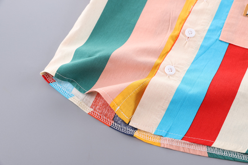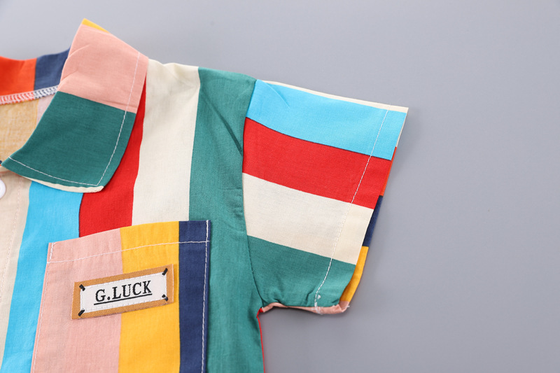패션 레인보우 수직 짧은 소매 세트 축하하는 대외 무역 소년 세트 여름 새로운 어린이 서양식 멋진 아기 인터넷스토어 가기