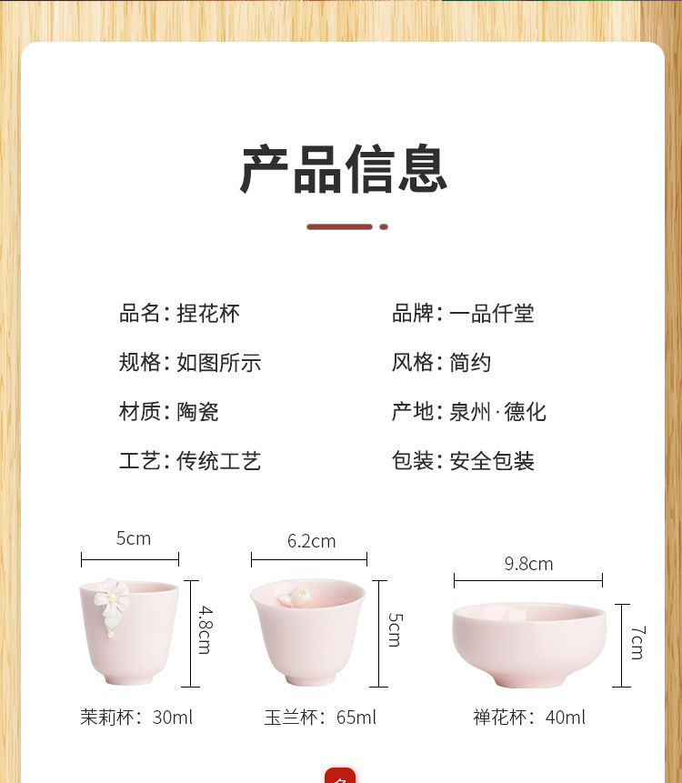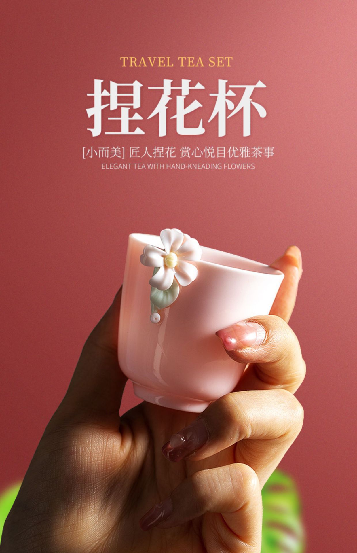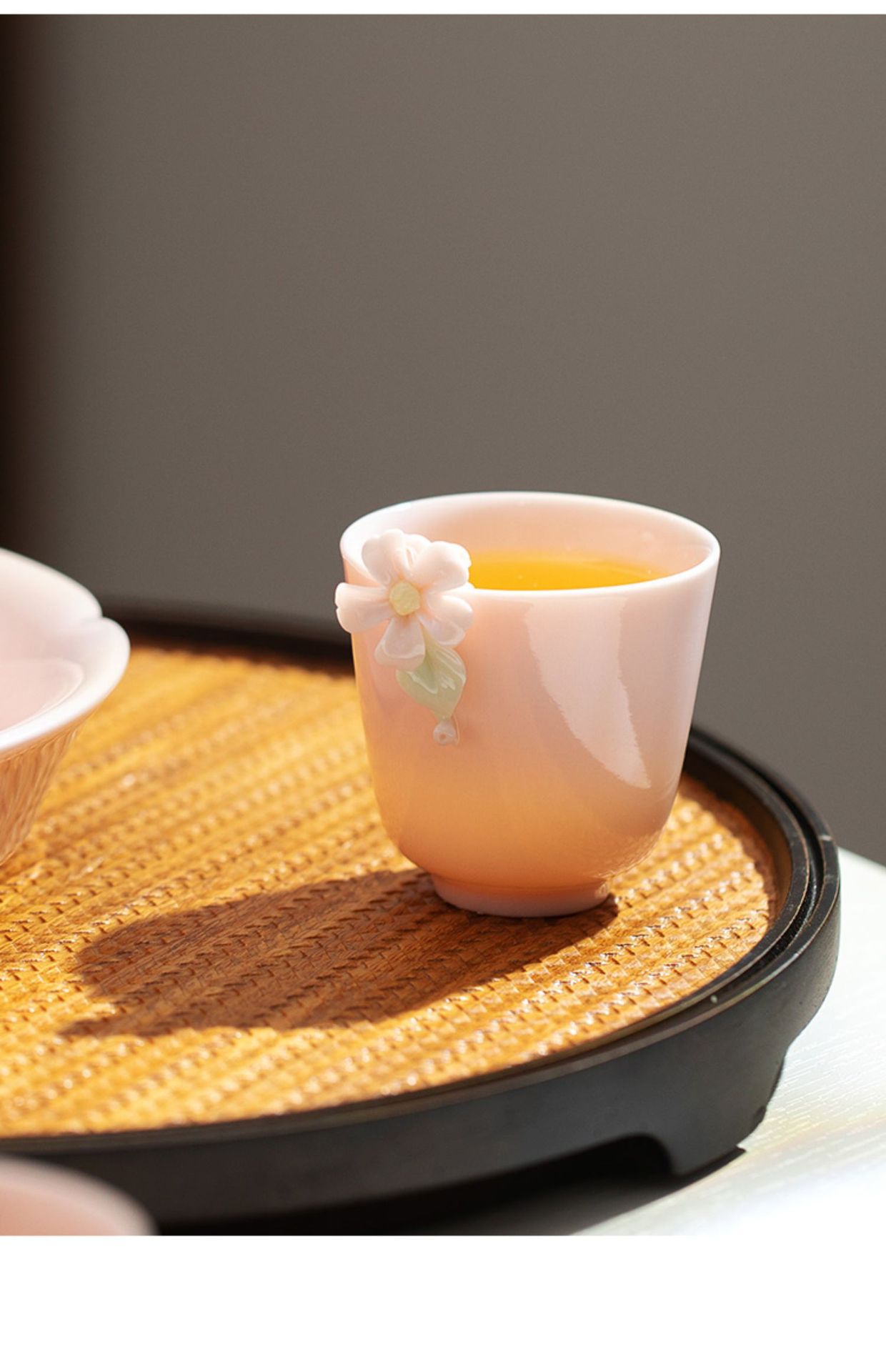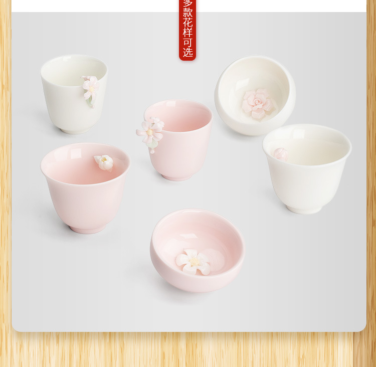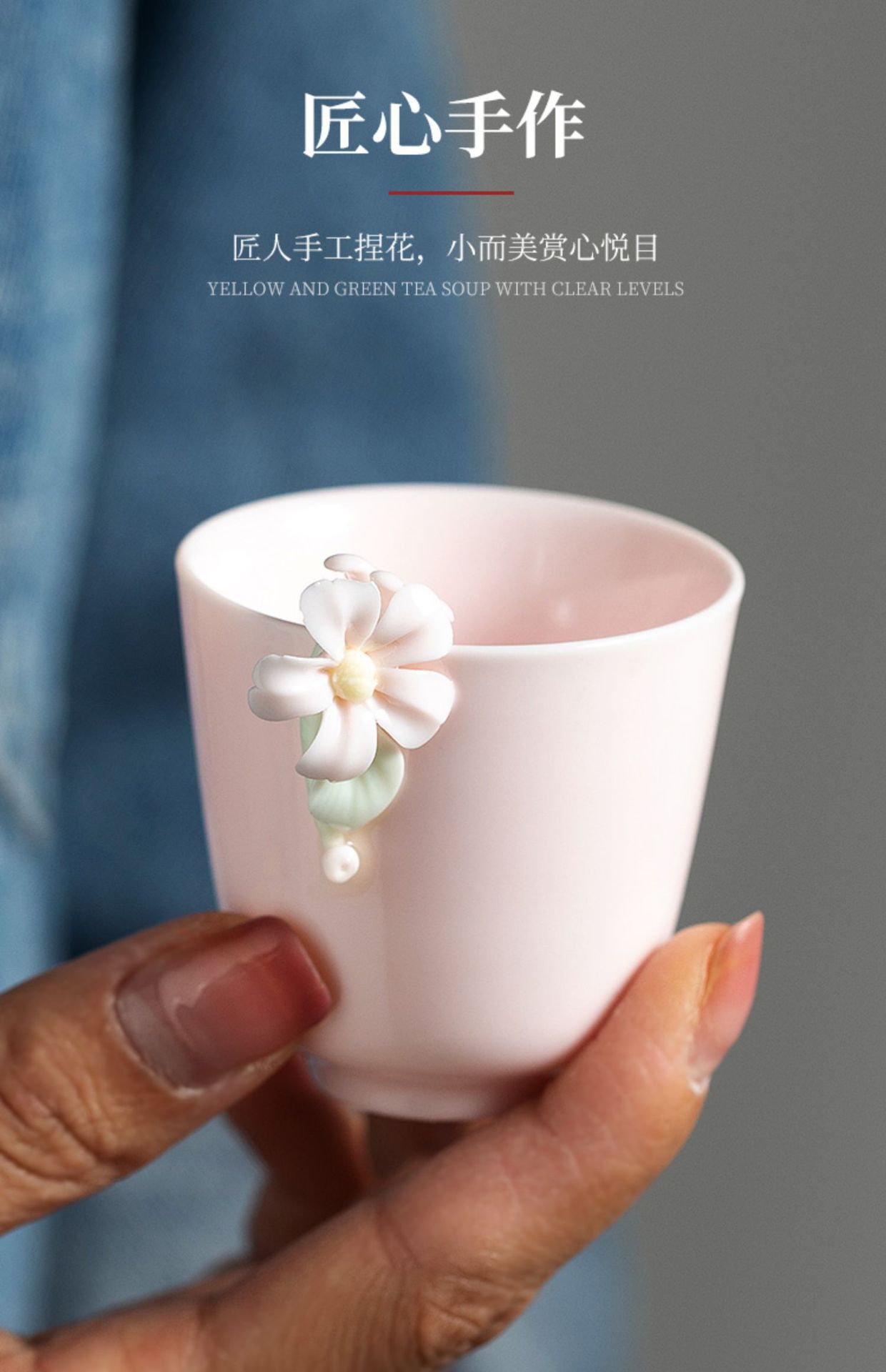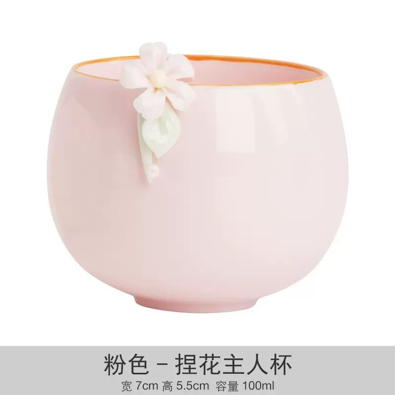 Yipin Kiln 순수 수제 핀치 꽃 마스터 컵 차 시음 컵 핑크 쿵푸 차 세트 액세서리 세라믹 티 컵 여성