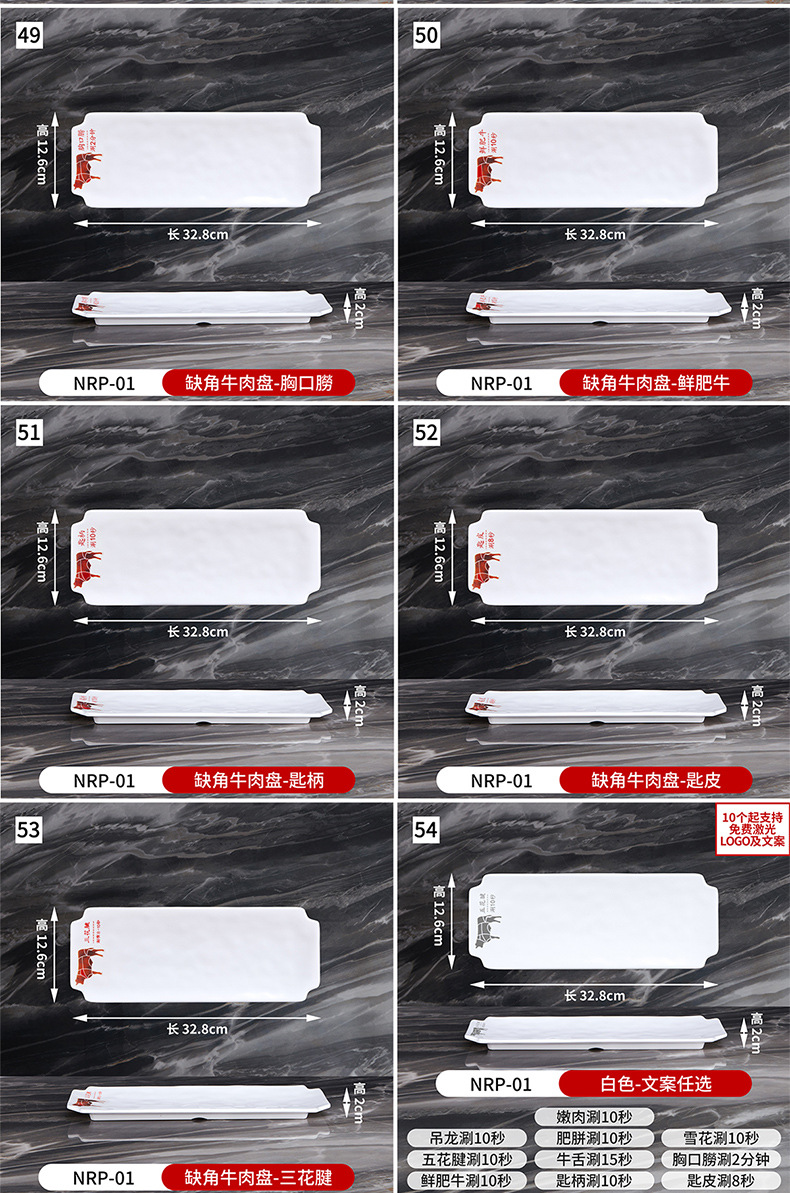 • 53 번 각진 쇠고기 접시 (3 꽃 힘줄) NRP-01