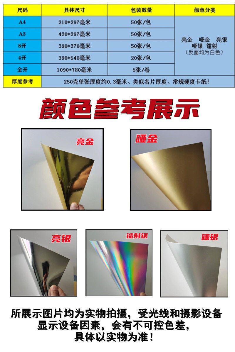 금과 실버 판지 A4A3 두꺼운 단면 거울 종이 판지 실버 반사 골판지 수제 모델 배경 레이저 종이