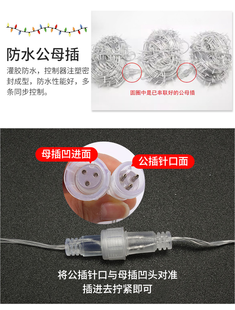 LED 컬러 라이트 스트링 방수 암수 플러그인 장식 조명 프로젝트 안개꽃 방수 야외 깜박이는 라이트 스트링스토어 가기