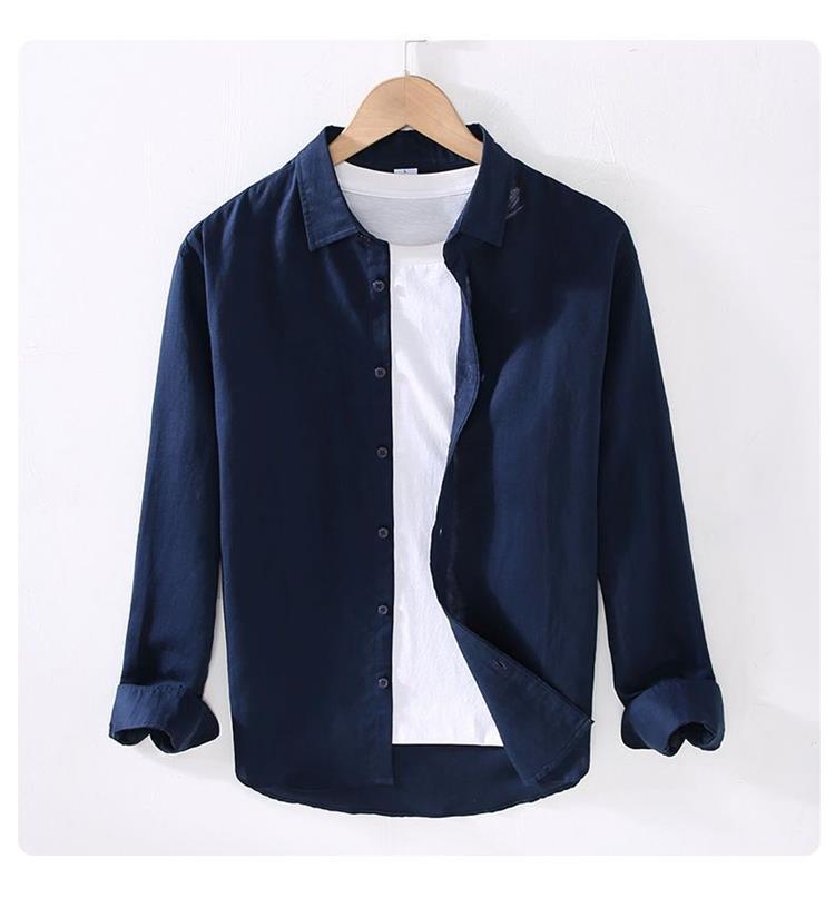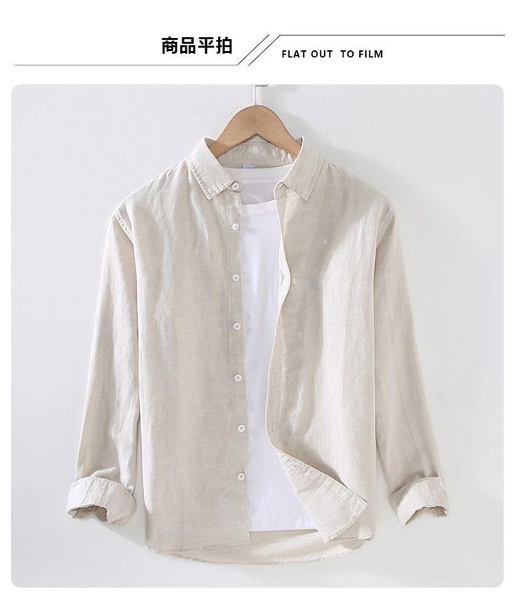 솔리드 컬러 얇은 리넨 긴팔 셔츠 남성면 및 리넨 셔츠 캐주얼 올 매치 편안한 통기성 리넨 소재 봄과 여름 패션스토어 가기