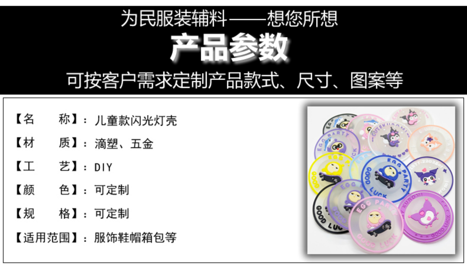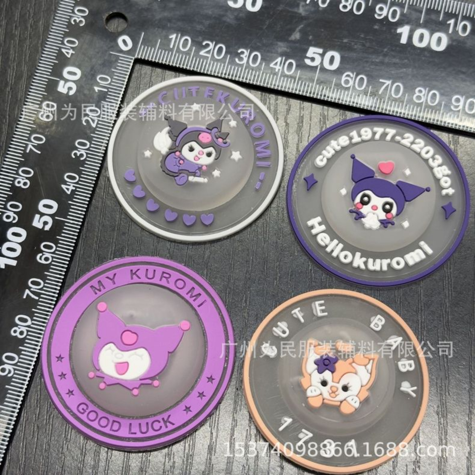 재고 있는 섬유 부자재, 여아용 귀여운 쿠로미 원형 발광 소프트 플라스틱 라벨 방수 훈장