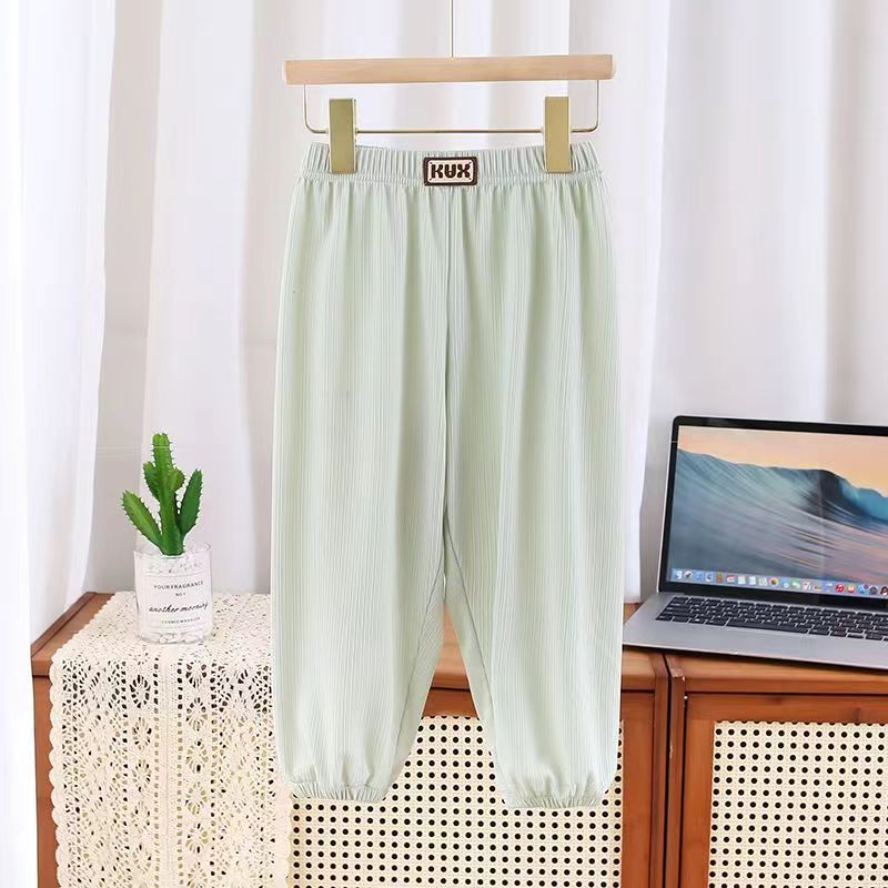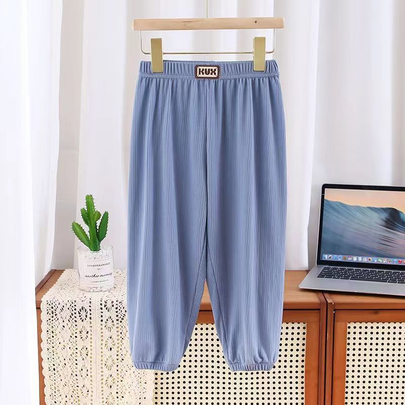 새로운 어린이 모기 방지 바지 아기의 여름 얼음 실크 발목 길이 바지 외부 얇은 태양 보호 바지 착용 유행 느슨한 발목 길이 바지스토어 가기