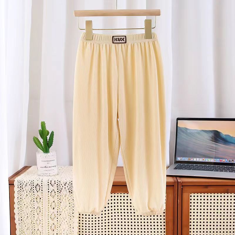 새로운 어린이 모기 방지 바지 아기의 여름 얼음 실크 발목 길이 바지 외부 얇은 태양 보호 바지 착용 유행 느슨한 발목 길이 바지