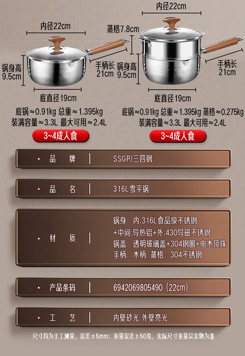 • 22cm+304 찜통 [신국가표준 316L 스틸, 건강한 무코팅]