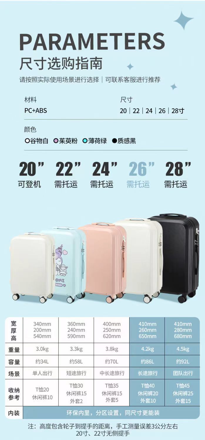 귀여운 어린이 만화 드롭 방지 내구성 트롤리 케이스 작은 경량 탑승 수하물 학생 가방 암호 상자
