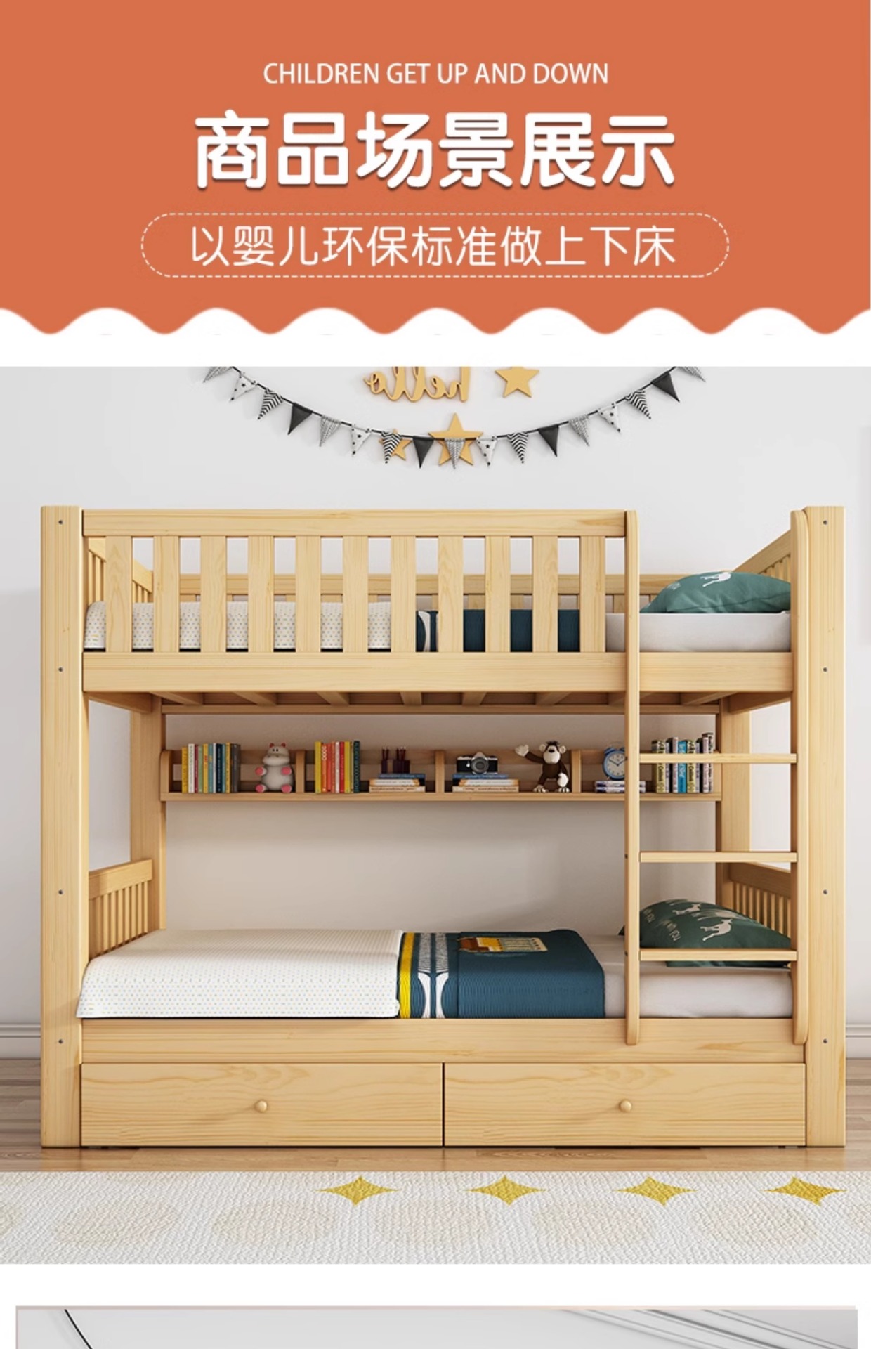 • ☆★[클래식] 통나무 침대 + 책장 + 이중 서랍☆★