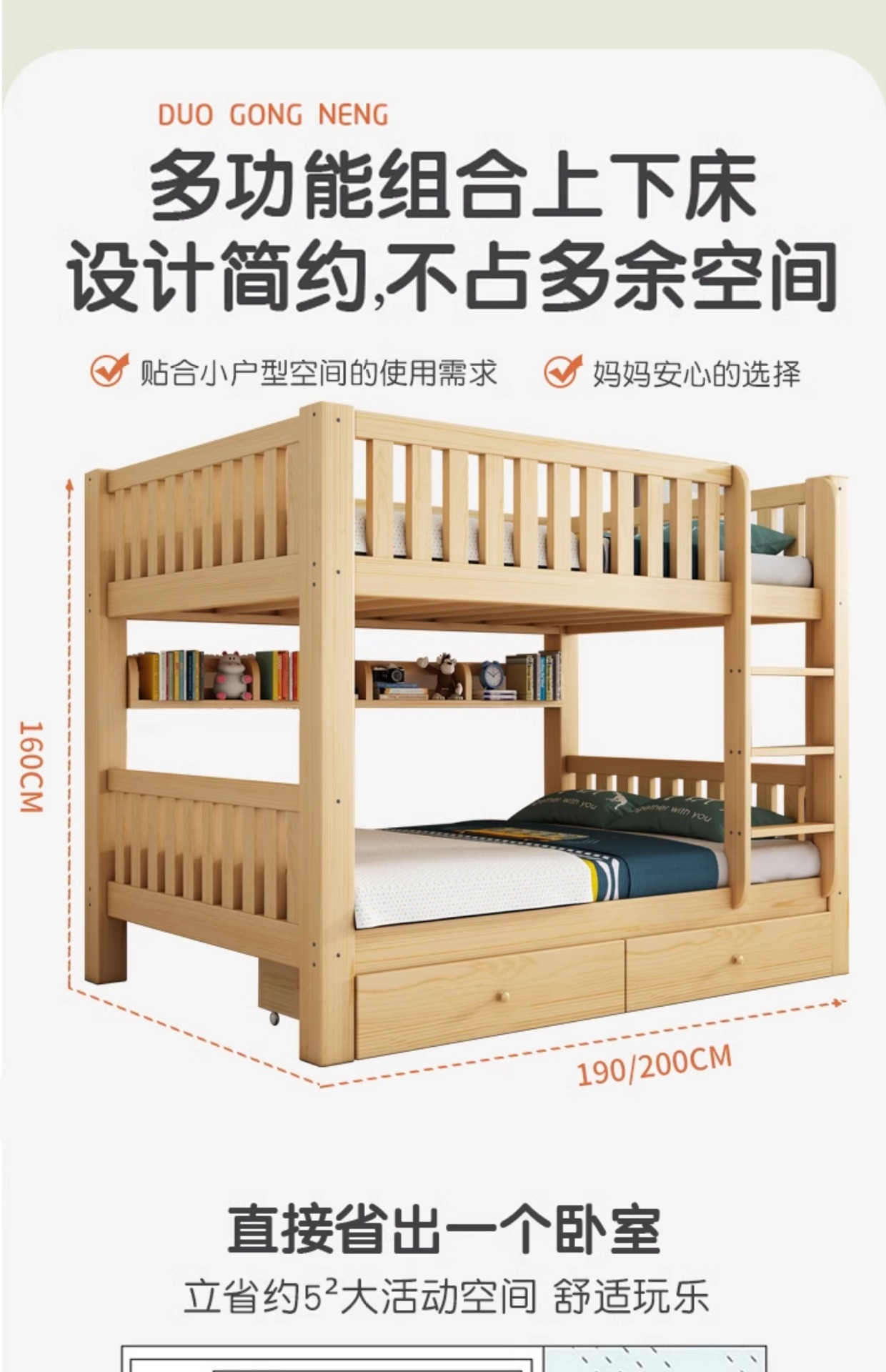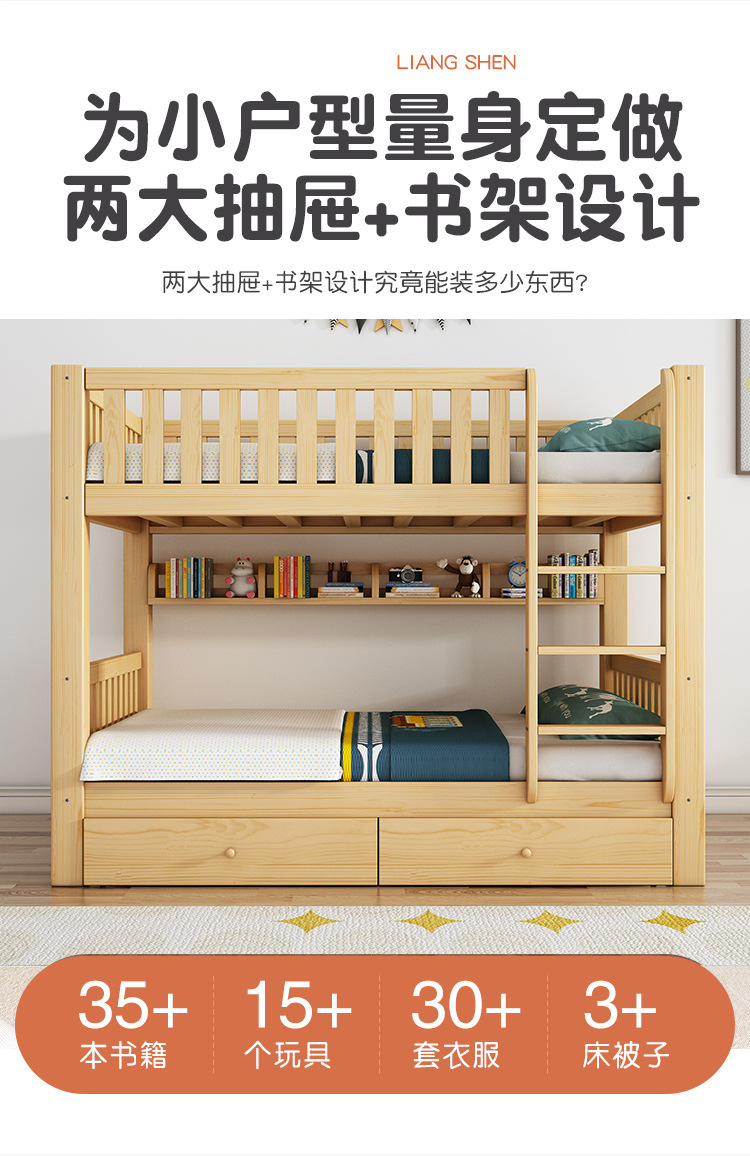 • ☆★[업그레이드 모델] 통나무 침대 + 책장 + 이중 서랍☆★