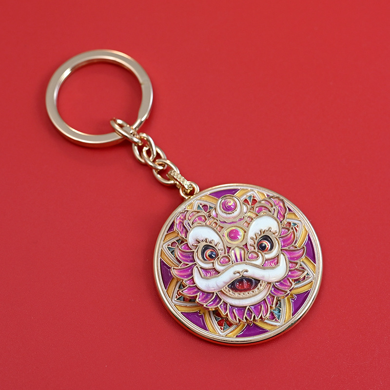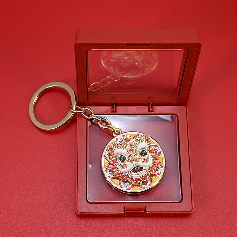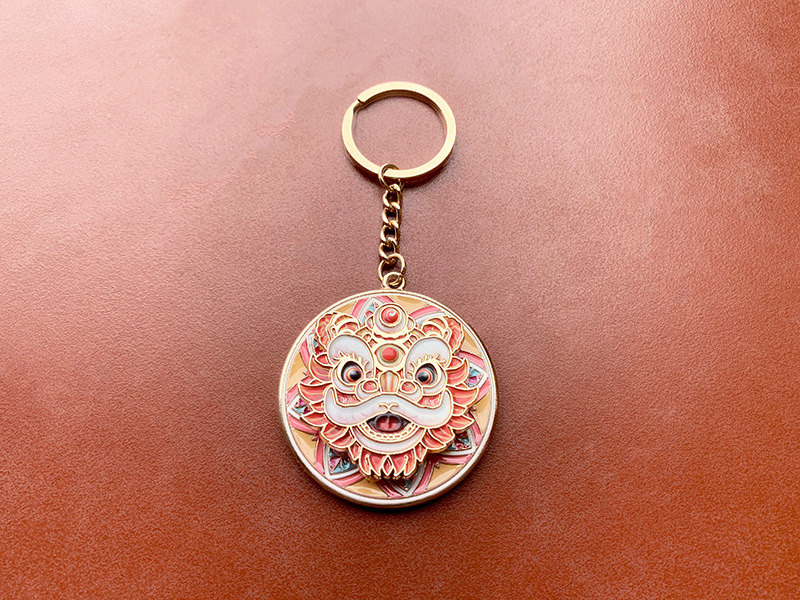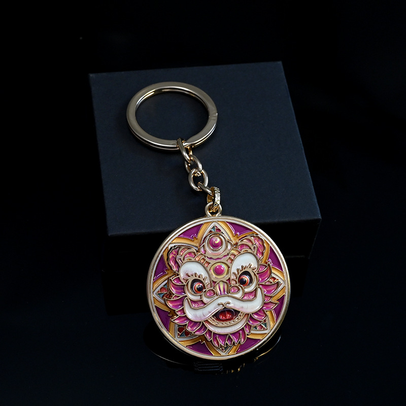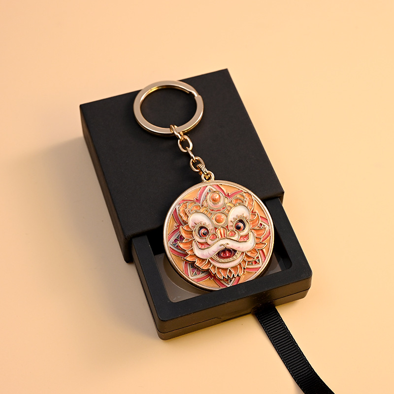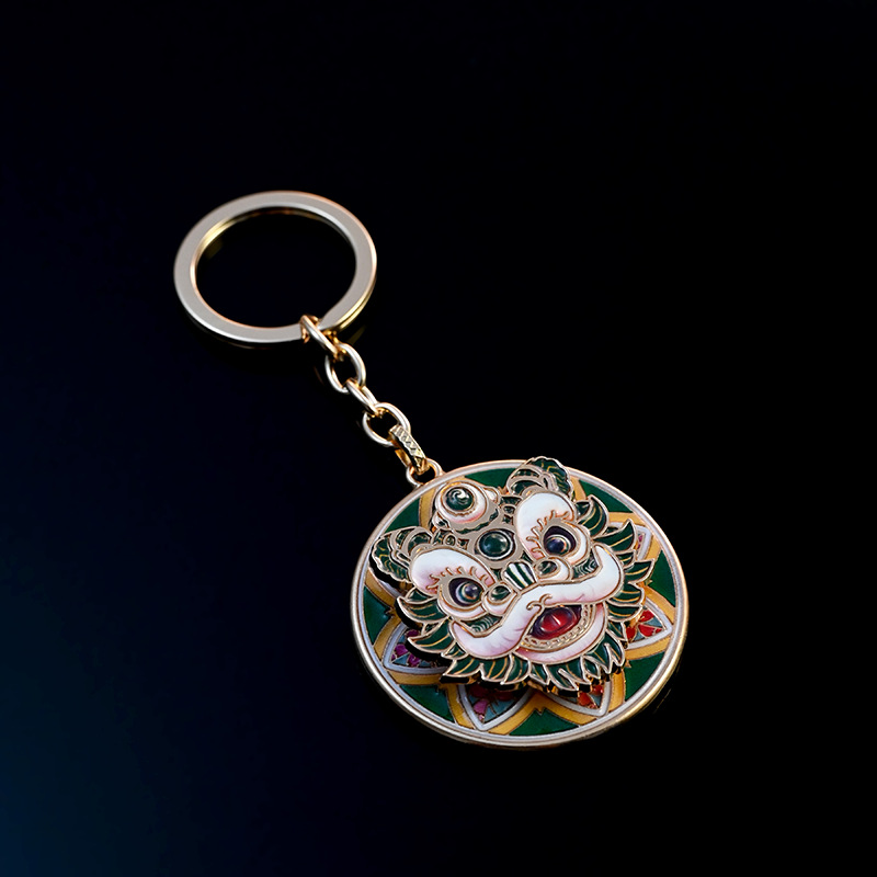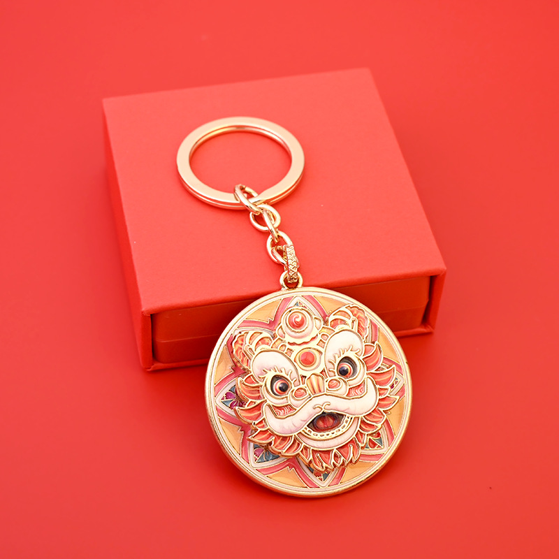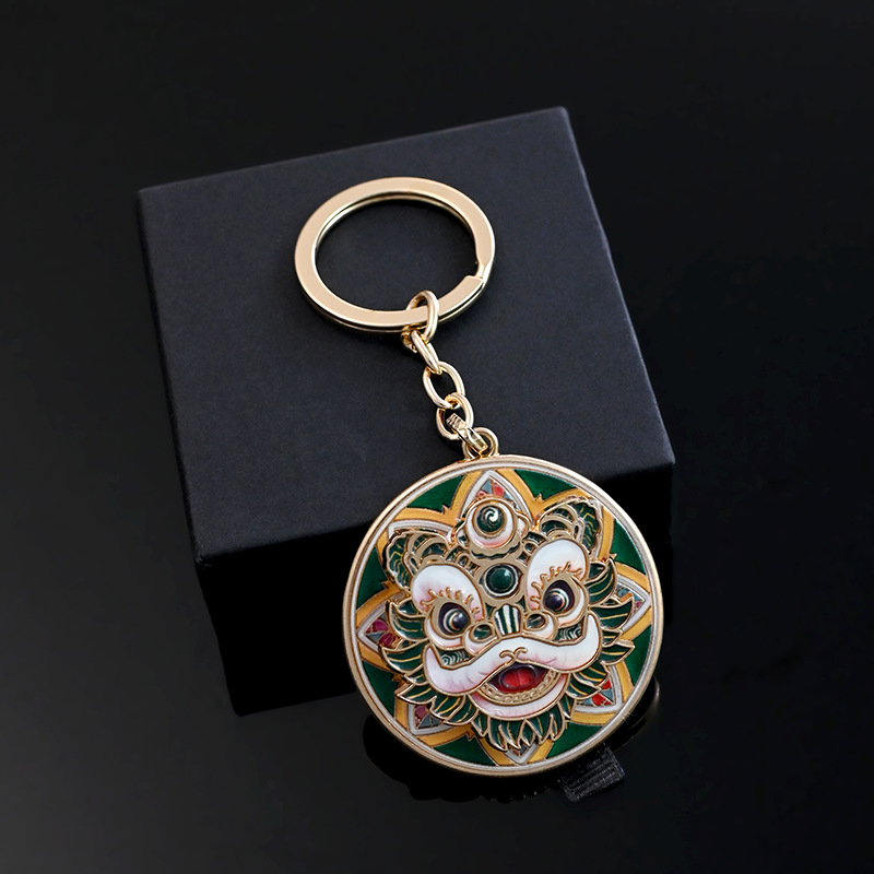 원래 중국 스타일의 새로운 국가 동향 사자 열쇠 고리 사자 손가락 끝 회 전자 자동차 펜던트 문화 및 창조적 인 작은 선물