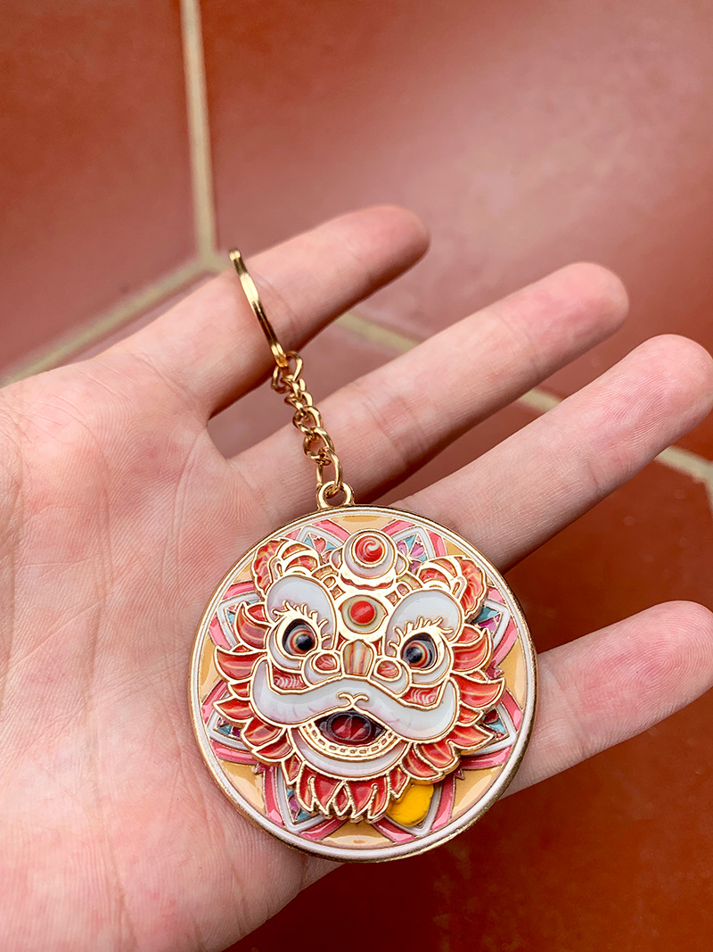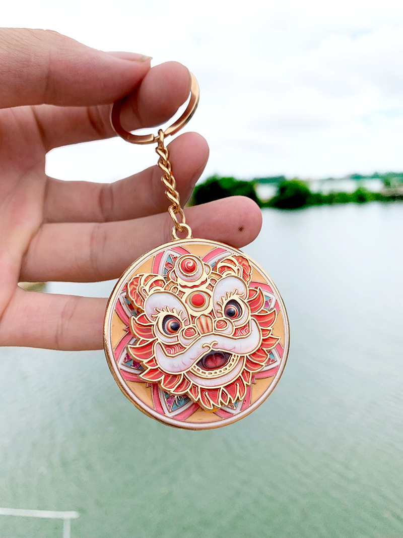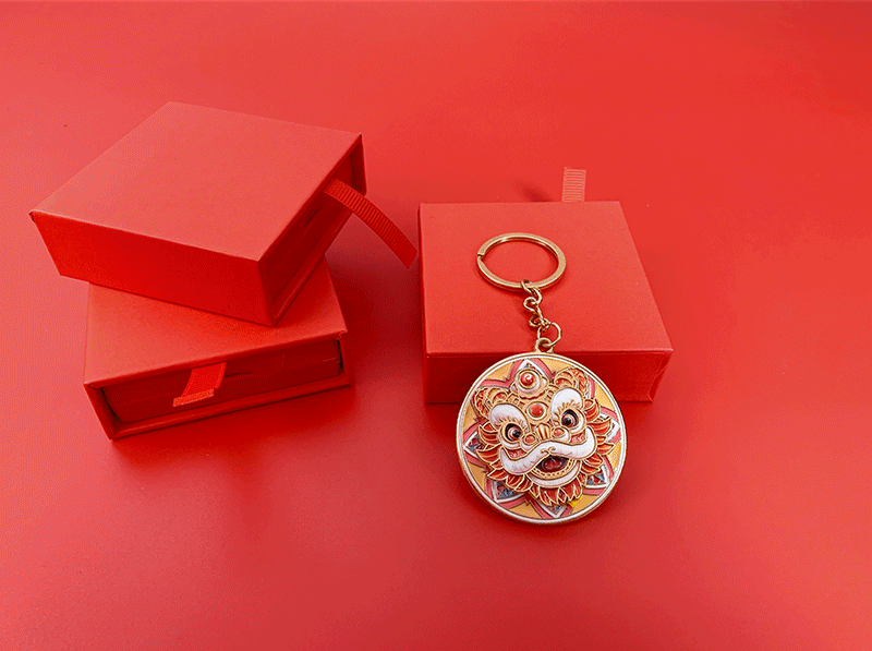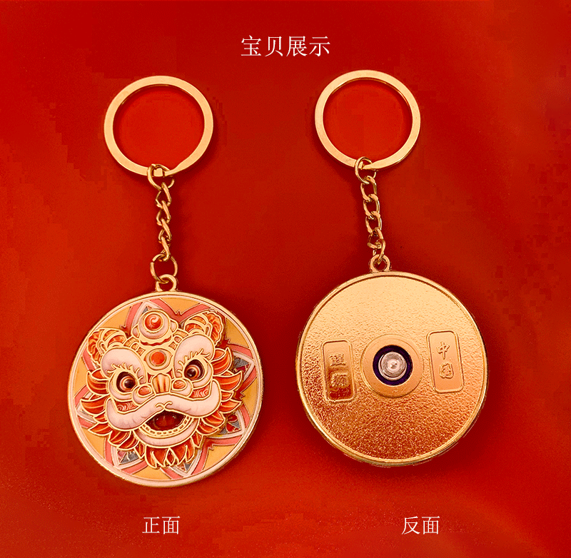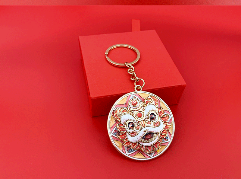 원래 중국 스타일의 새로운 국가 동향 사자 열쇠 고리 사자 손가락 끝 회 전자 자동차 펜던트 문화 및 창조적 인 작은 선물스토어 가기