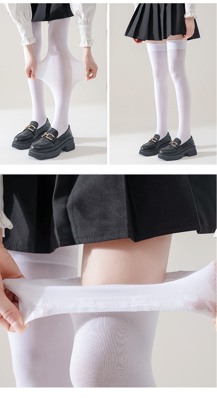 무릎 위 양말 실리콘 미끄럼 방지 오버 화이트 스타킹 얇은 길쭉한 플러스 사이즈 넓어지고 살찐 스타킹 초탄성 슬리밍스토어 가기