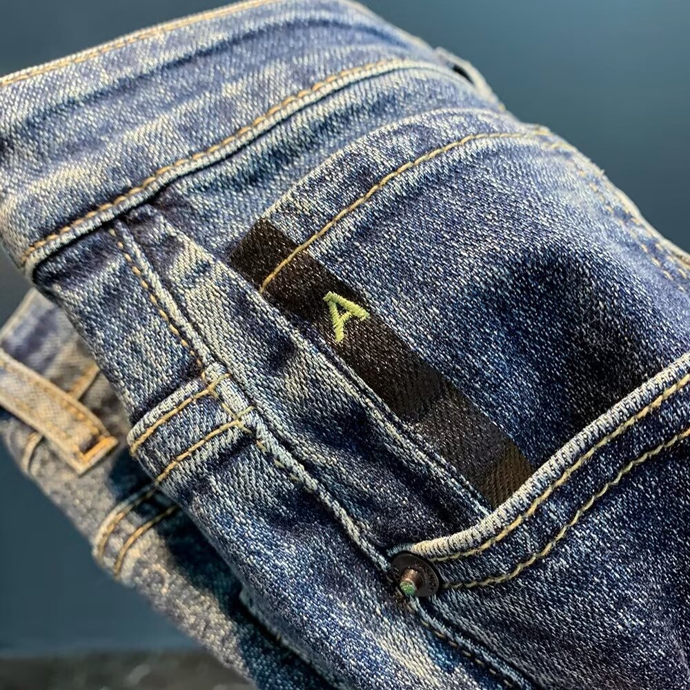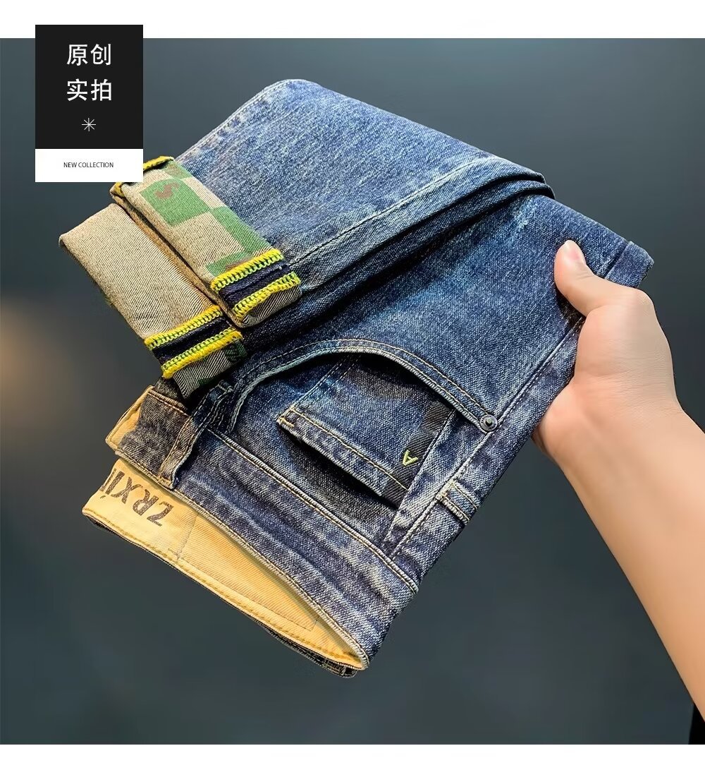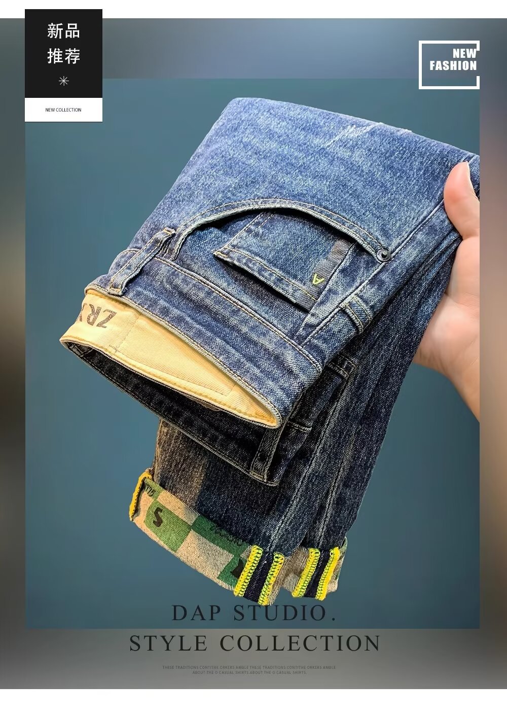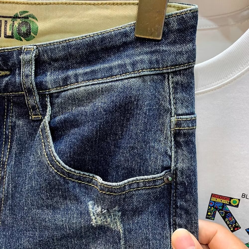 트렌디 한 브랜드 바지 남성 봄과 여름 새로운 스타일 트렌디 한 핸섬 찢어진 청바지 남성 트렌디 브랜드 인스 타 그램 슬림 핏 독특한 스트레치 레깅스스토어 가기