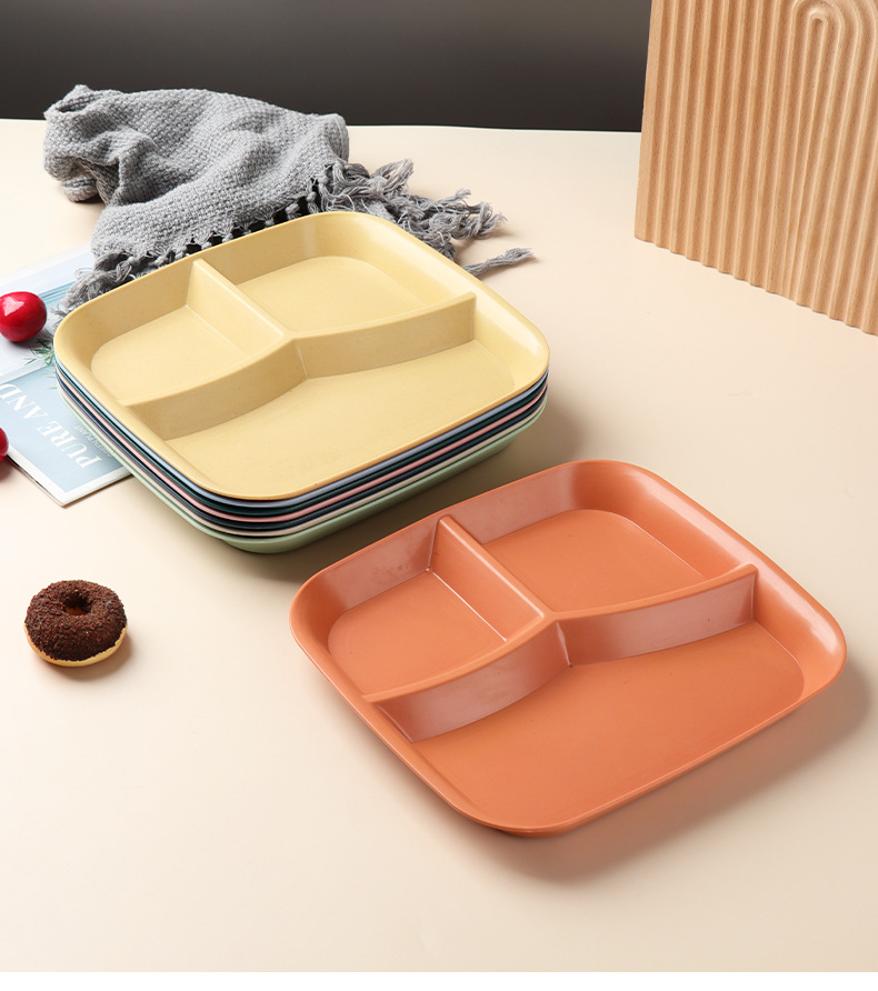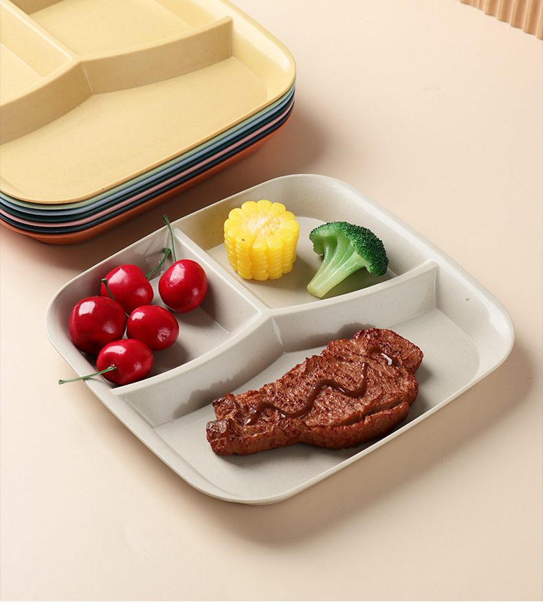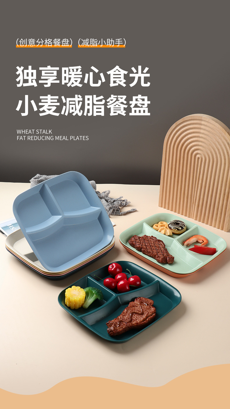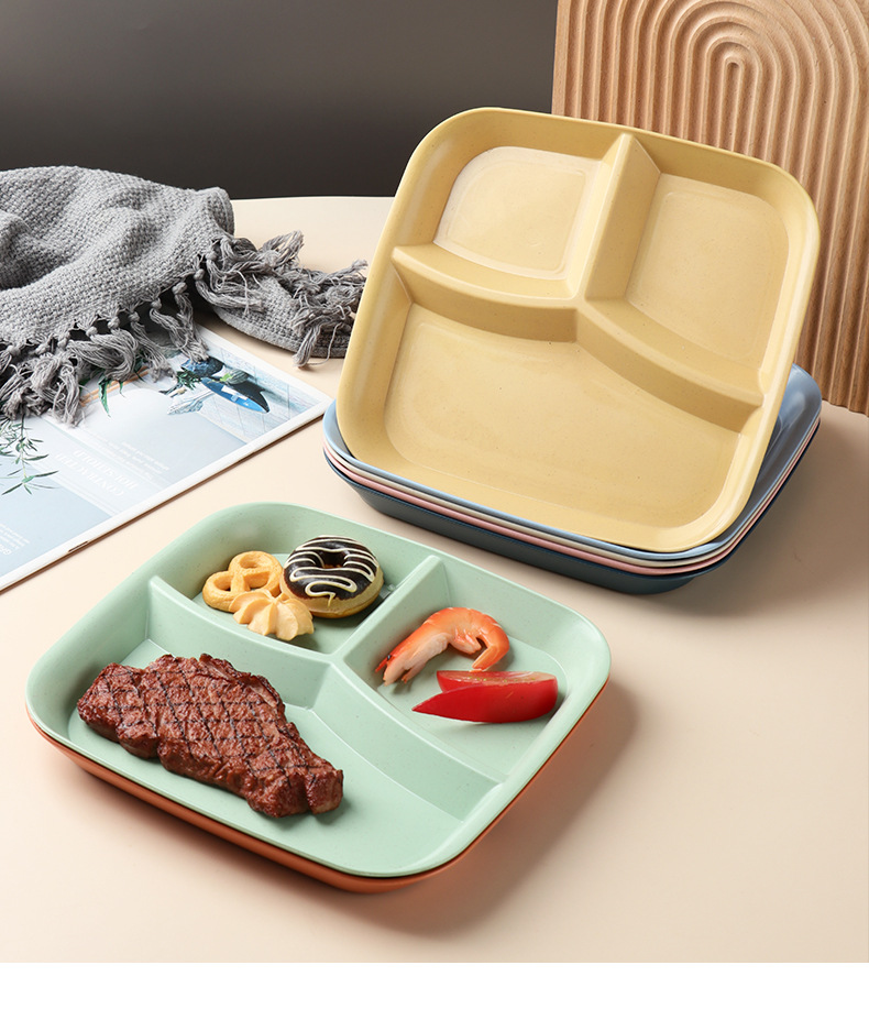밀 밀짚 3 그리드 스퀘어 디너 플레이트 가정용 거실 과일 샐러드 디너 플레이트 아침 식사 1 인 지방 감소 플레이트