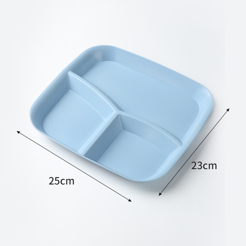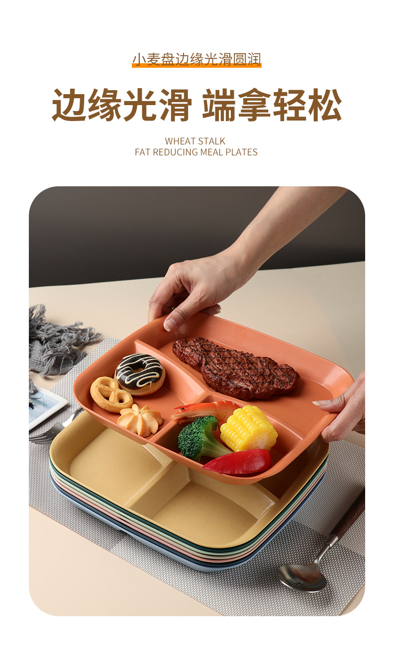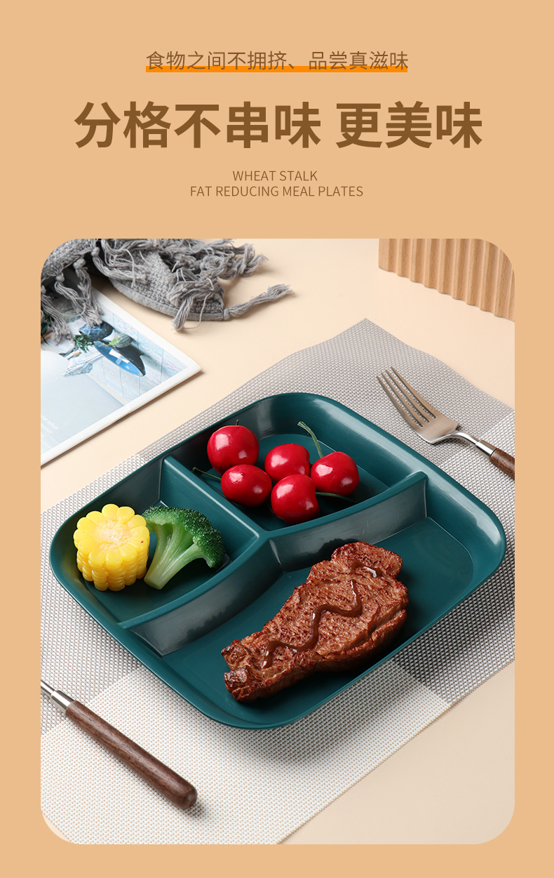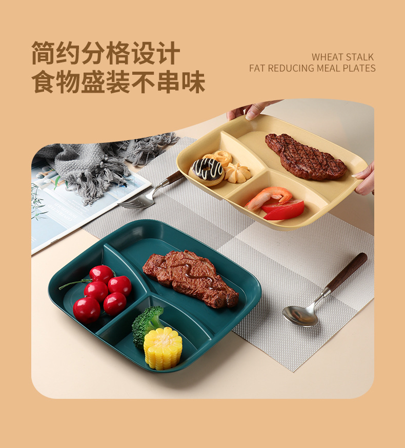 밀 밀짚 3 그리드 스퀘어 디너 플레이트 가정용 거실 과일 샐러드 디너 플레이트 아침 식사 1 인 지방 감소 플레이트