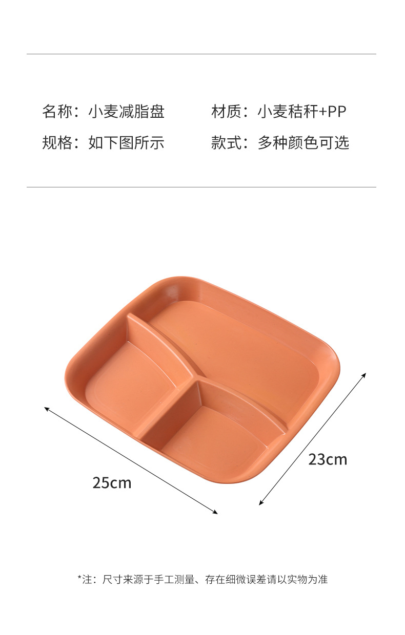 밀 밀짚 3 그리드 스퀘어 디너 플레이트 가정용 거실 과일 샐러드 디너 플레이트 아침 식사 1 인 지방 감소 플레이트스토어 가기