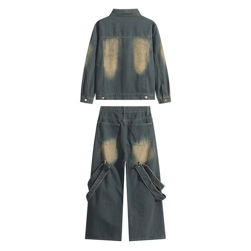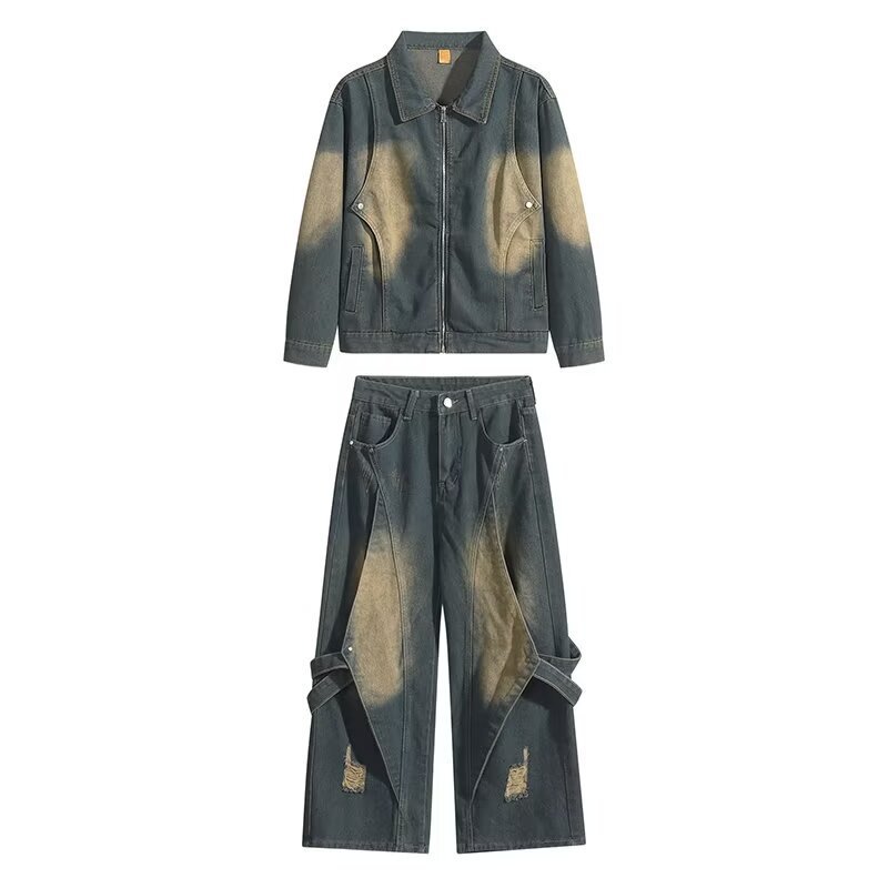 국경 간 재고 새로운 스포츠 데님 세트 남자 봄과 가을 새로운 유행 카디건 캐주얼 착용 투피스 트렌디