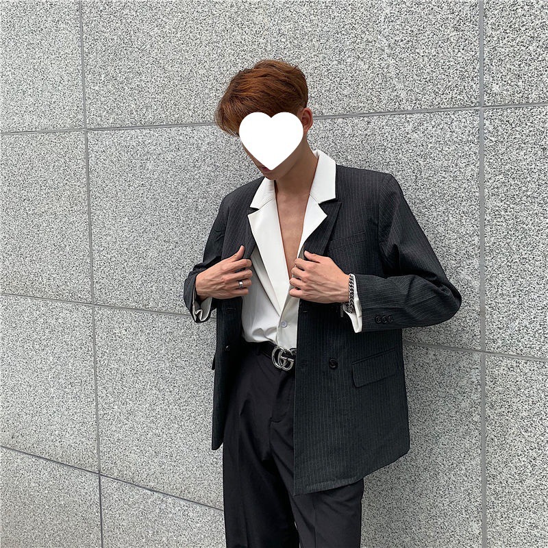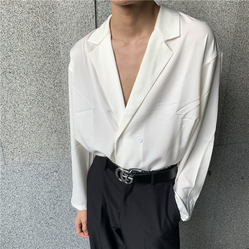 봄 한국 스타일 세련된 금욕 우아한 세트 칼라 셔츠 남성용 트렌디 한 디자인 센스 긴 소매 셔츠 화이트 블랙스토어 가기