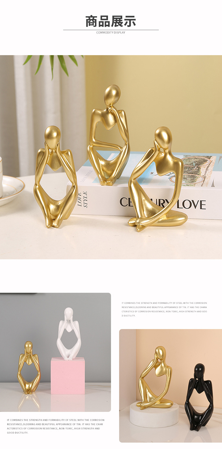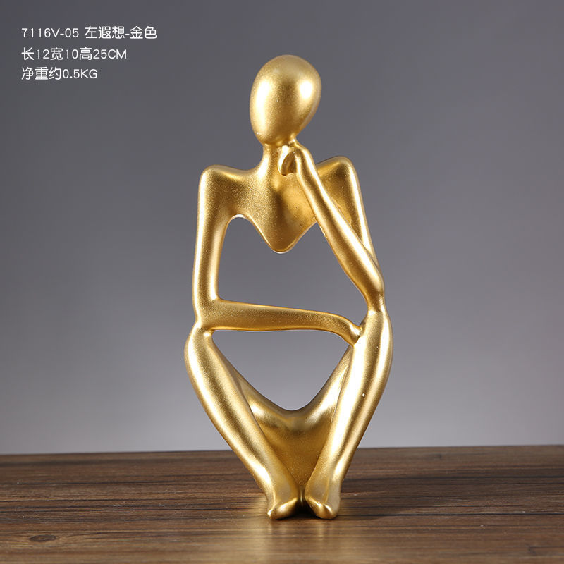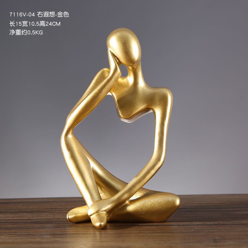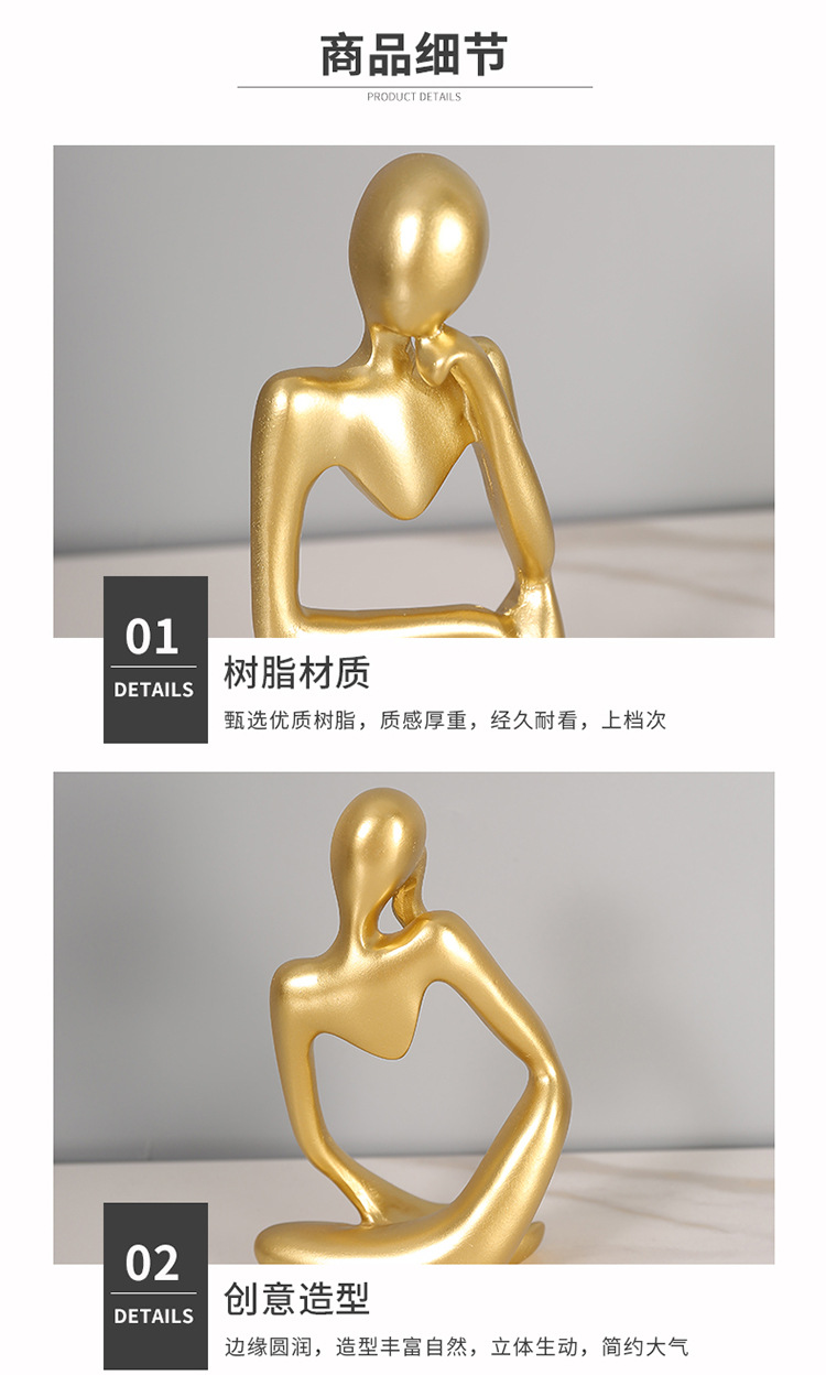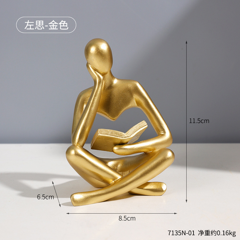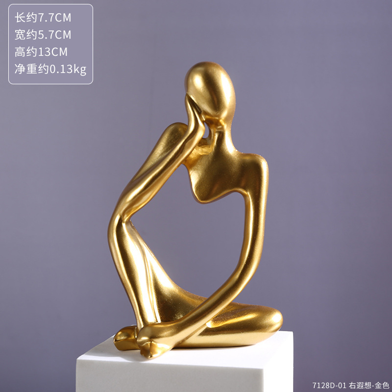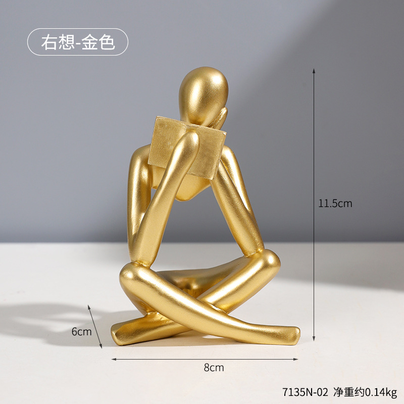 현대 미술 캐릭터 앉아 자세 장식 수지 작은 황금 남자 장식 거실 연구 사무실 추상 캐릭터 장식