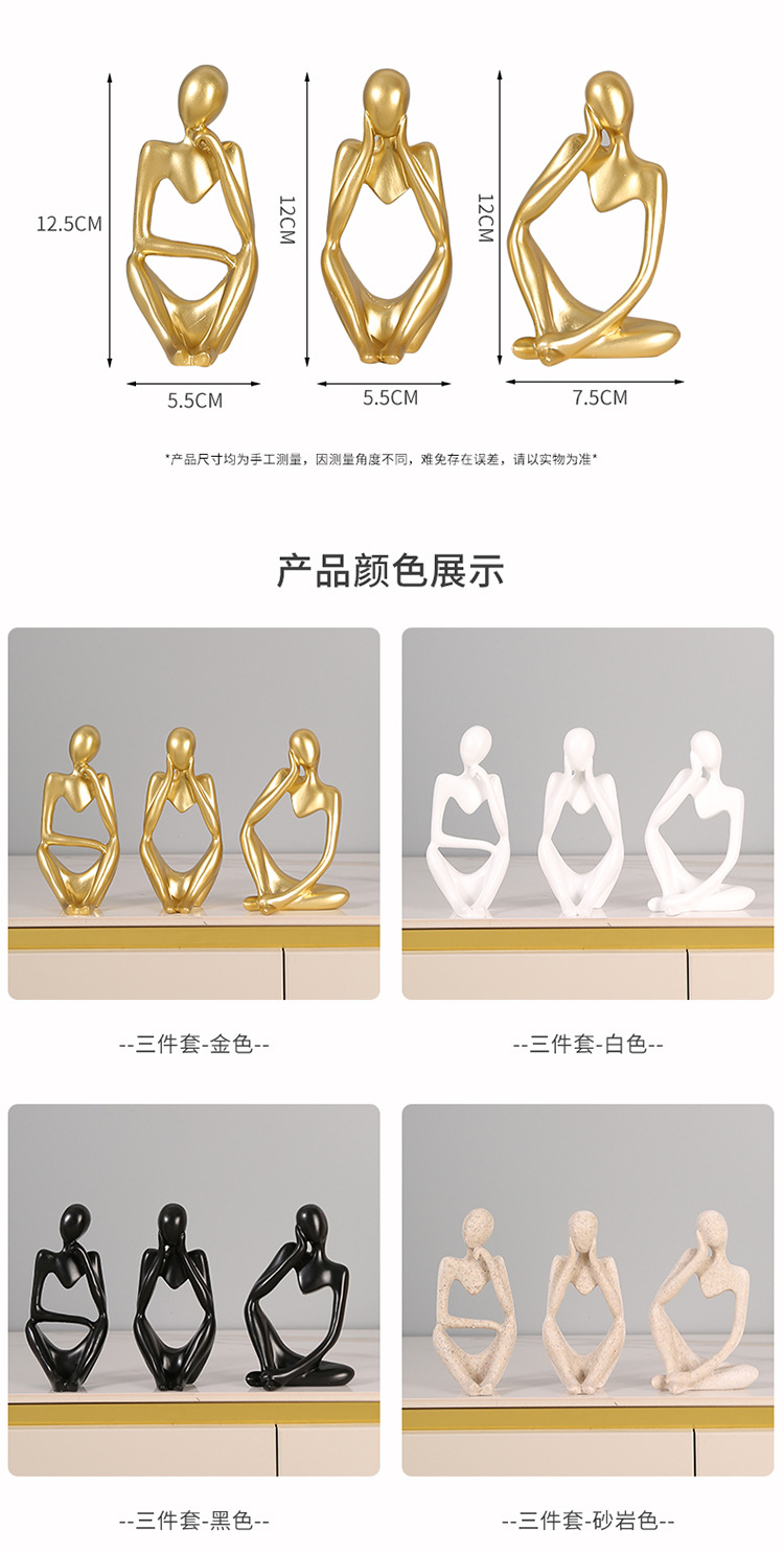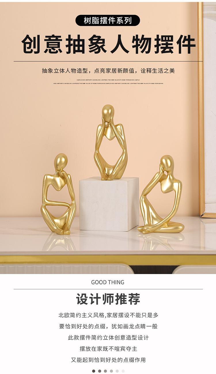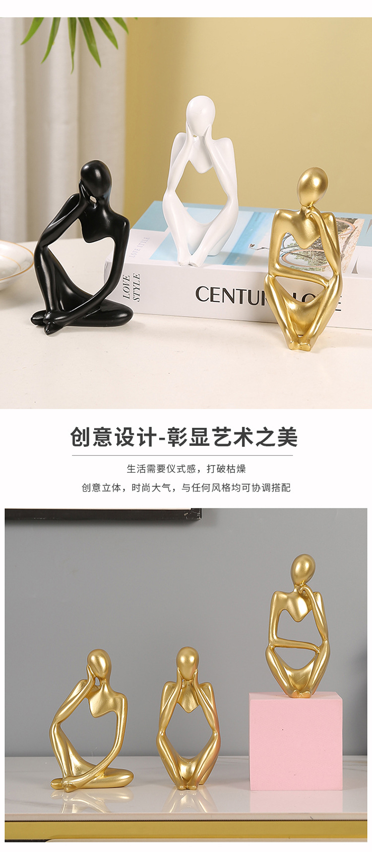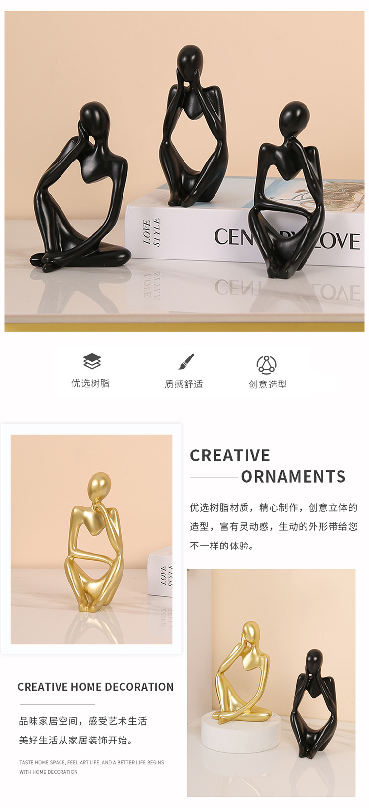 현대 미술 캐릭터 앉아 자세 장식 수지 작은 황금 남자 장식 거실 연구 사무실 추상 캐릭터 장식