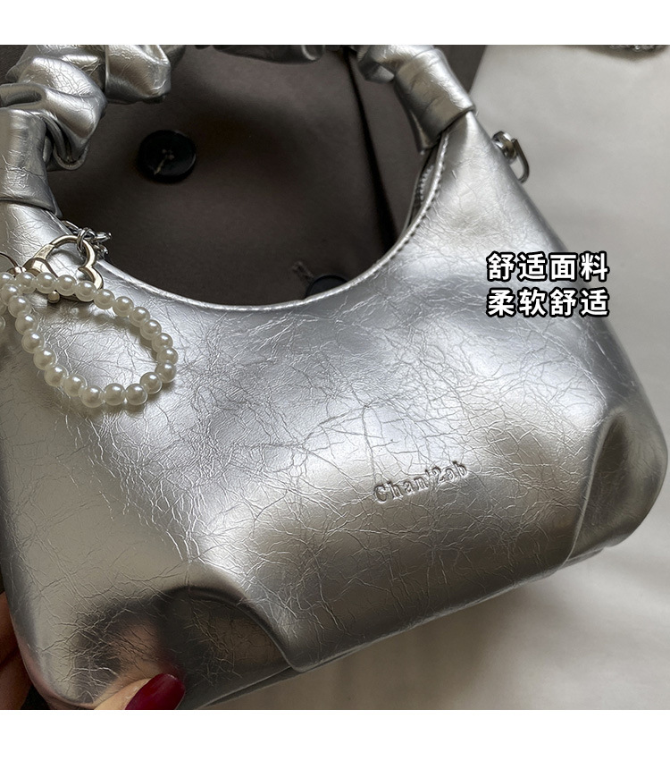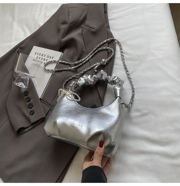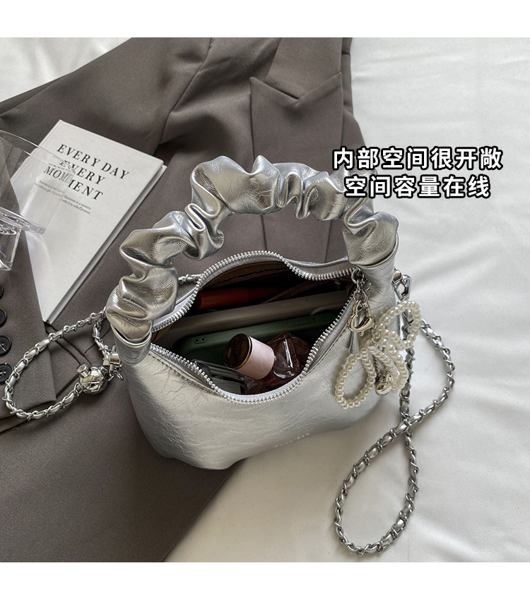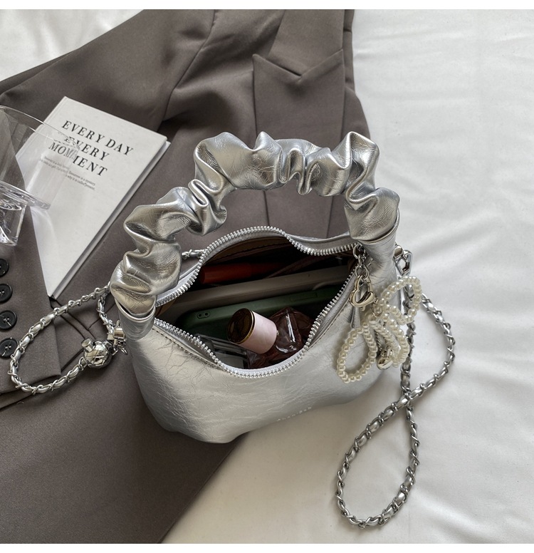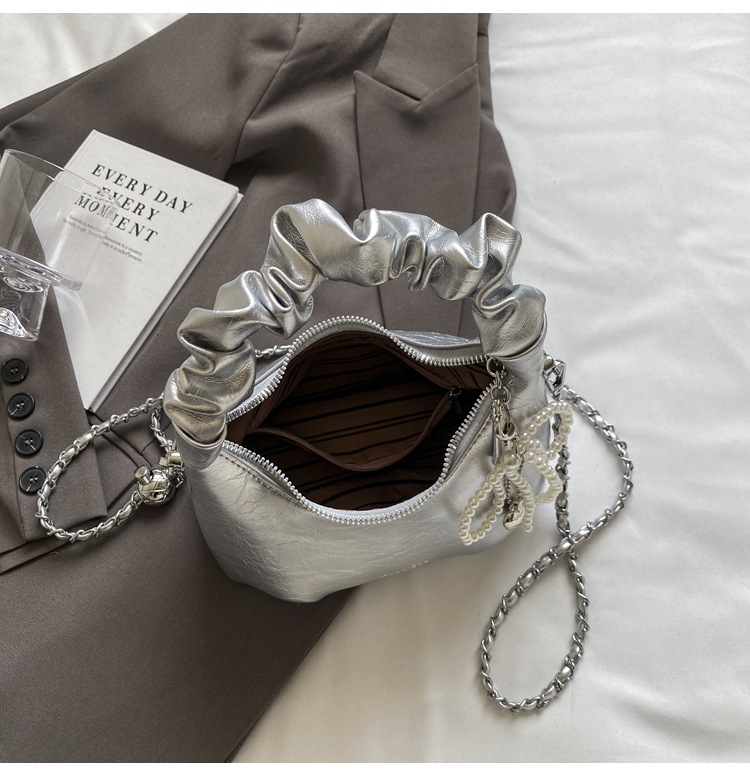실버 플리츠 핸드백 여성용 2026 여름 신상 만두백 다용도 외국풍 체인 통근 크로스백