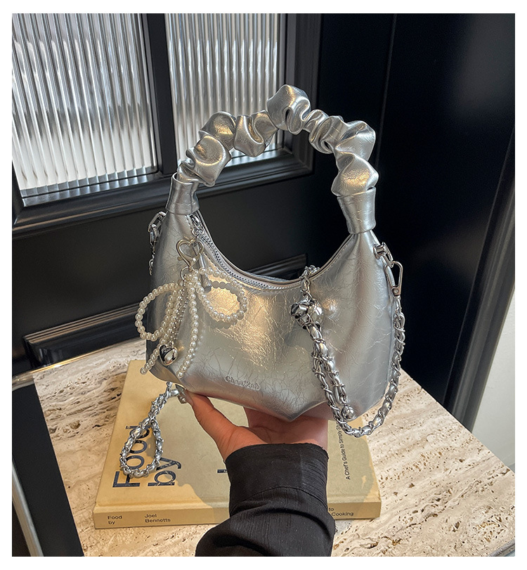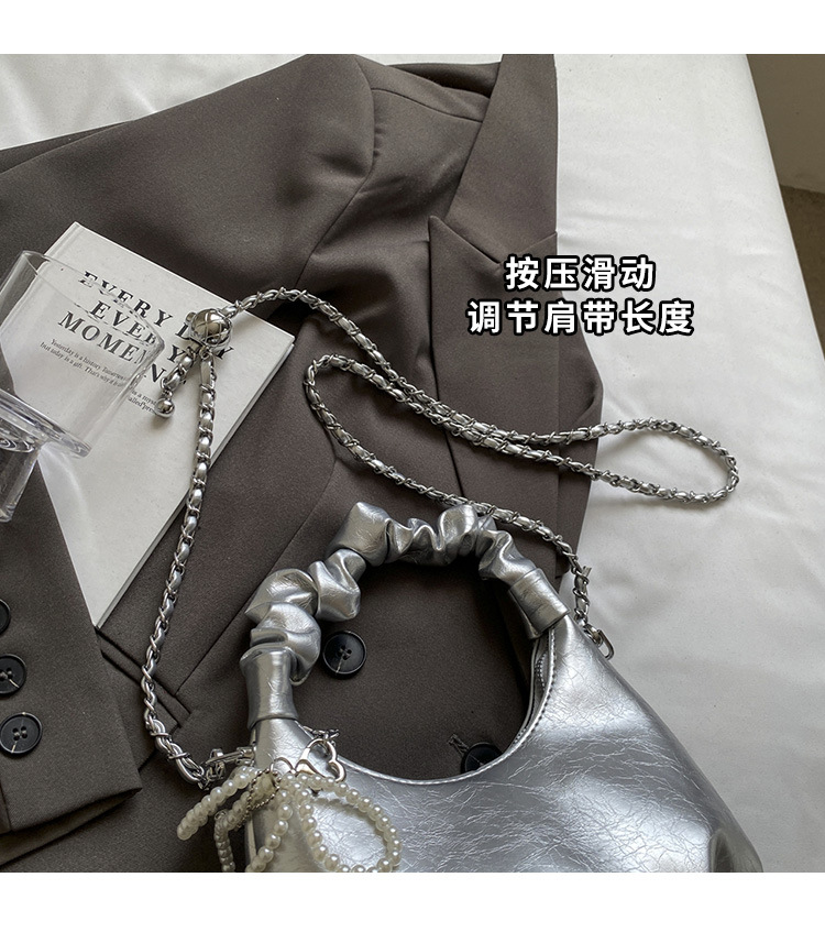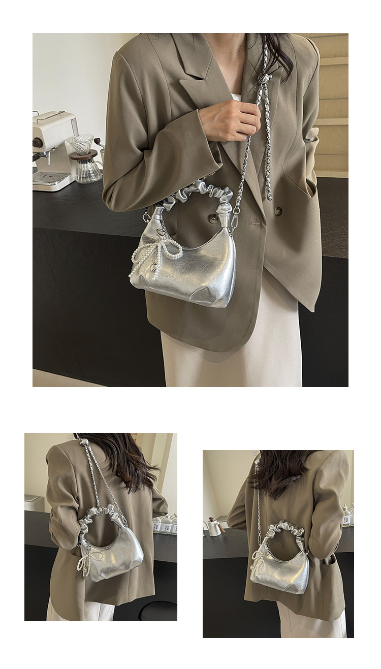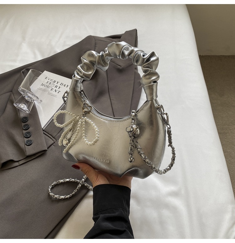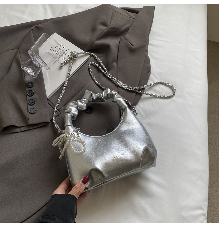 실버 플리츠 핸드백 여성용 2026 여름 신상 만두백 다용도 외국풍 체인 통근 크로스백