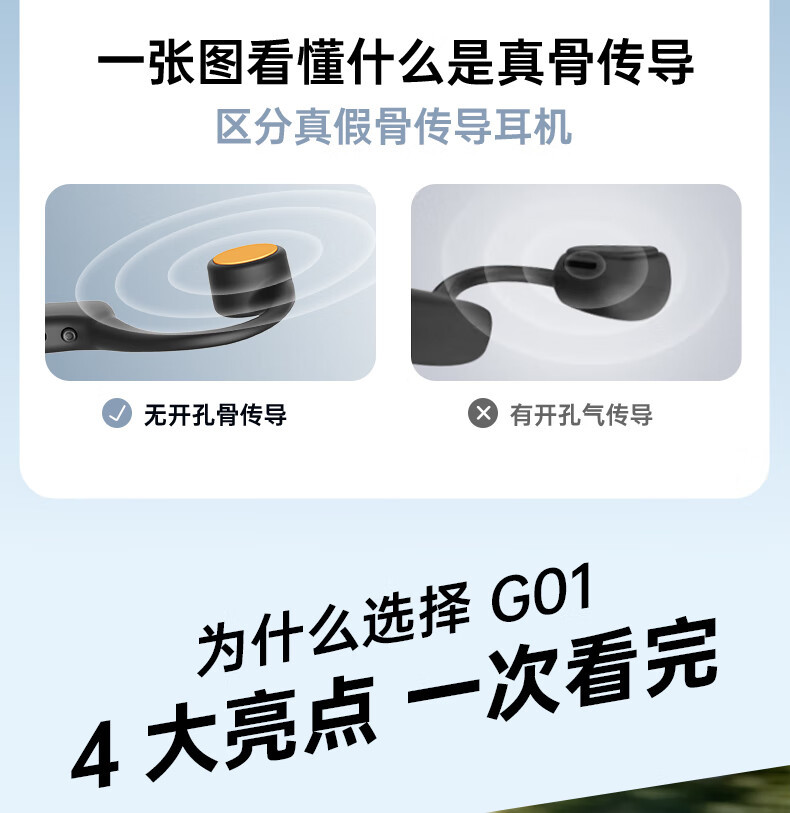 국경을 넘는 G01 골전도 블루투스 이어폰, 귀걸이형, 긴 배터리 수명, 러닝 스포츠용, 가볍고 얇은 무선 골전도 이어폰스토어 가기