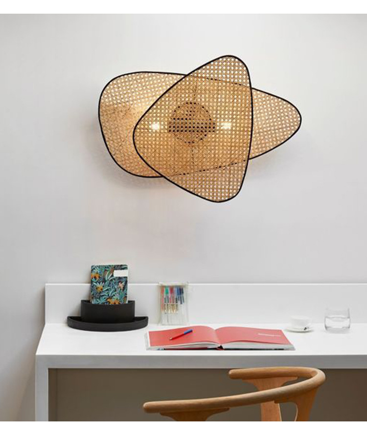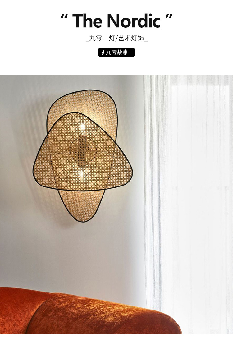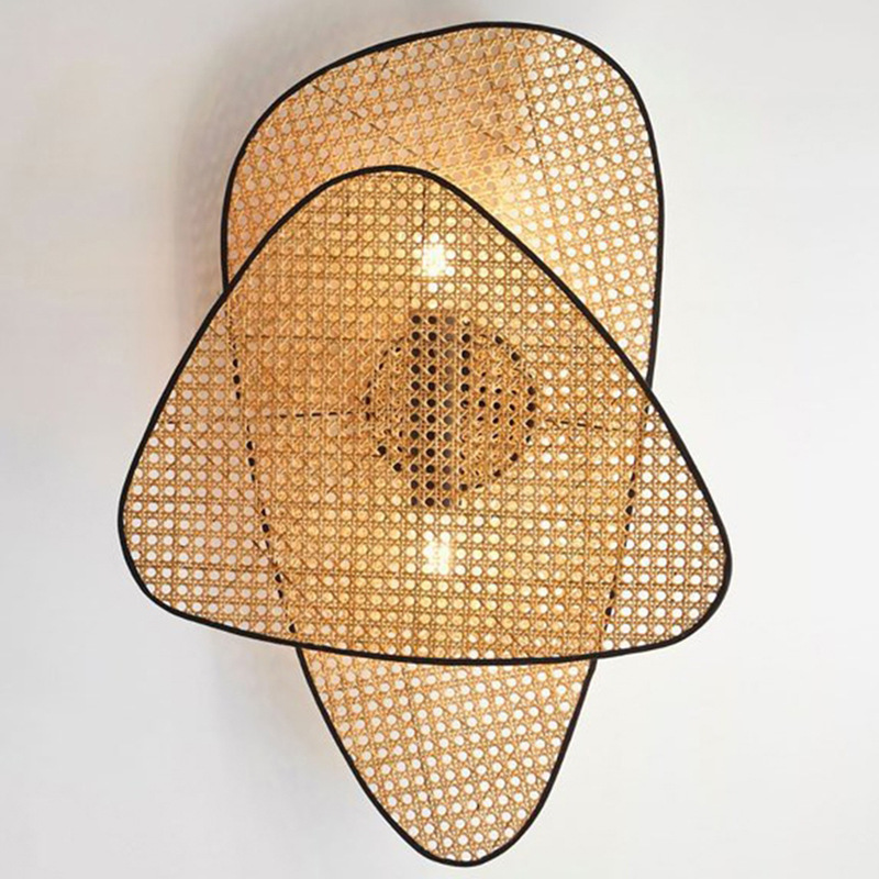 일본식 벽 램프 창조적 인 성격 스타일 선 골동품 침대 옆 벽 램프 등나무 직조 통로 복도 홈스테이 램프