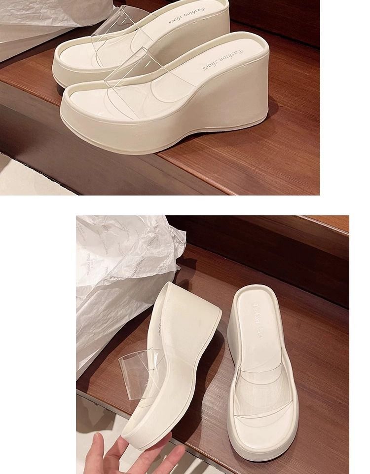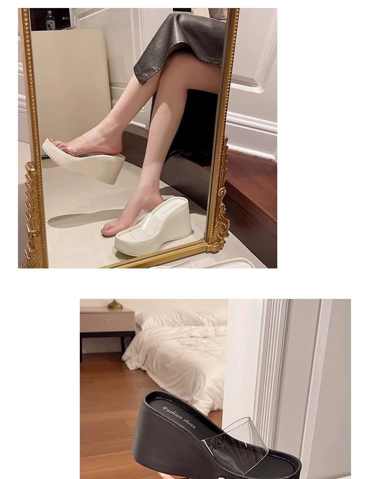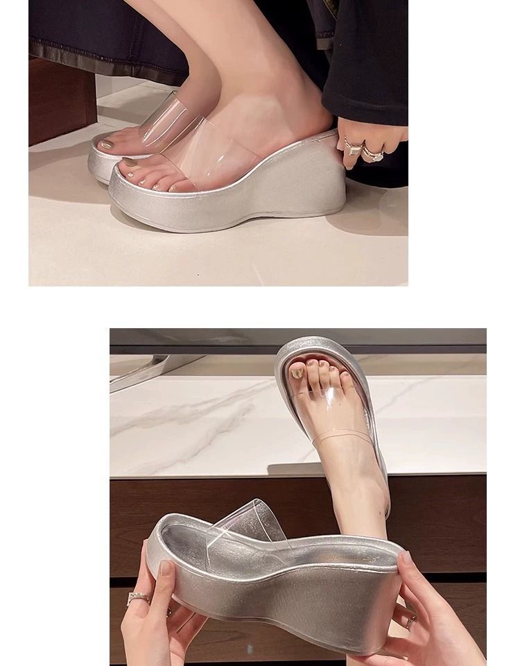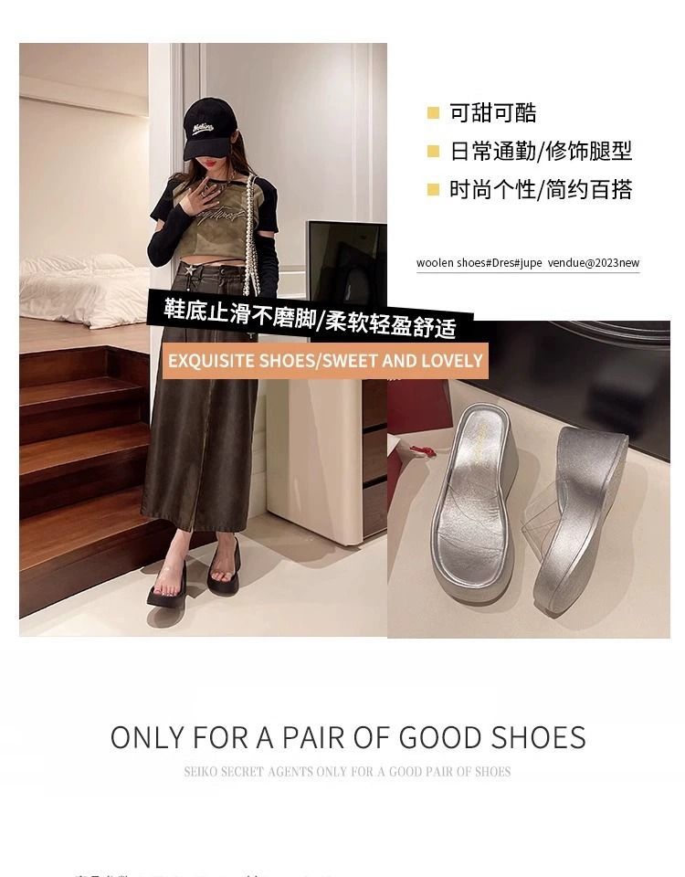 핫 스타일 두꺼운 바닥 샌들과 슬리퍼 여성을위한 2024 여름 새로운 도착 유행 웨지 투명 세련된 올 매치 슈퍼 페어리 슬라이드스토어 가기