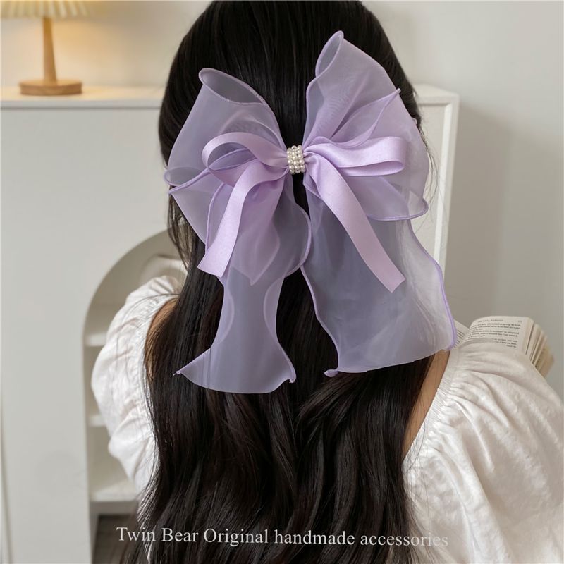 봄과 여름 슈퍼 페어리 메쉬 활 리본 헤어핀 퍼블릭 스타일 올 매치 펄 사이드 클립 백 헤드 스프링 클립 헤드웨어스토어 가기