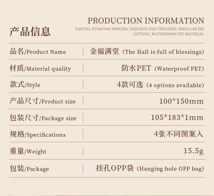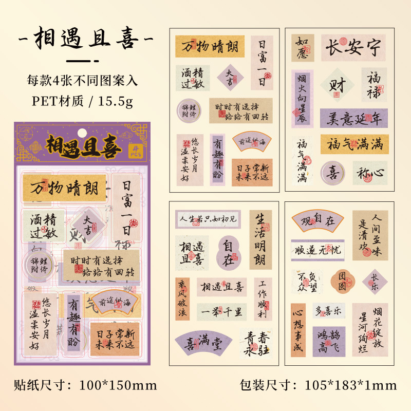 Yue Zhen Jin Fu Man Tang 방수 애완 동물 손 계정 스티커 패키지 중국 스타일 텍스트 창조적 인 스티커 diy 손 계정 소재