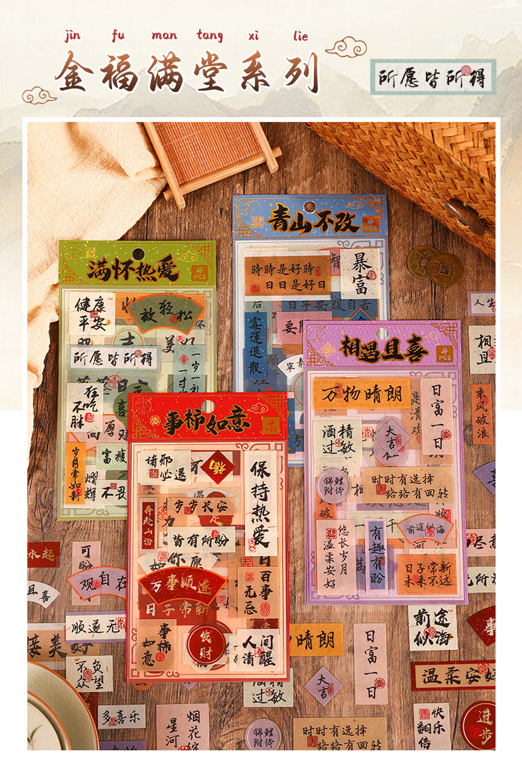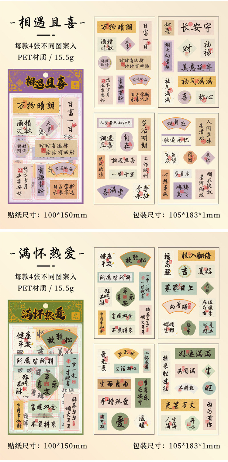 Yue Zhen Jin Fu Man Tang 방수 애완 동물 손 계정 스티커 패키지 중국 스타일 텍스트 창조적 인 스티커 diy 손 계정 소재스토어 가기