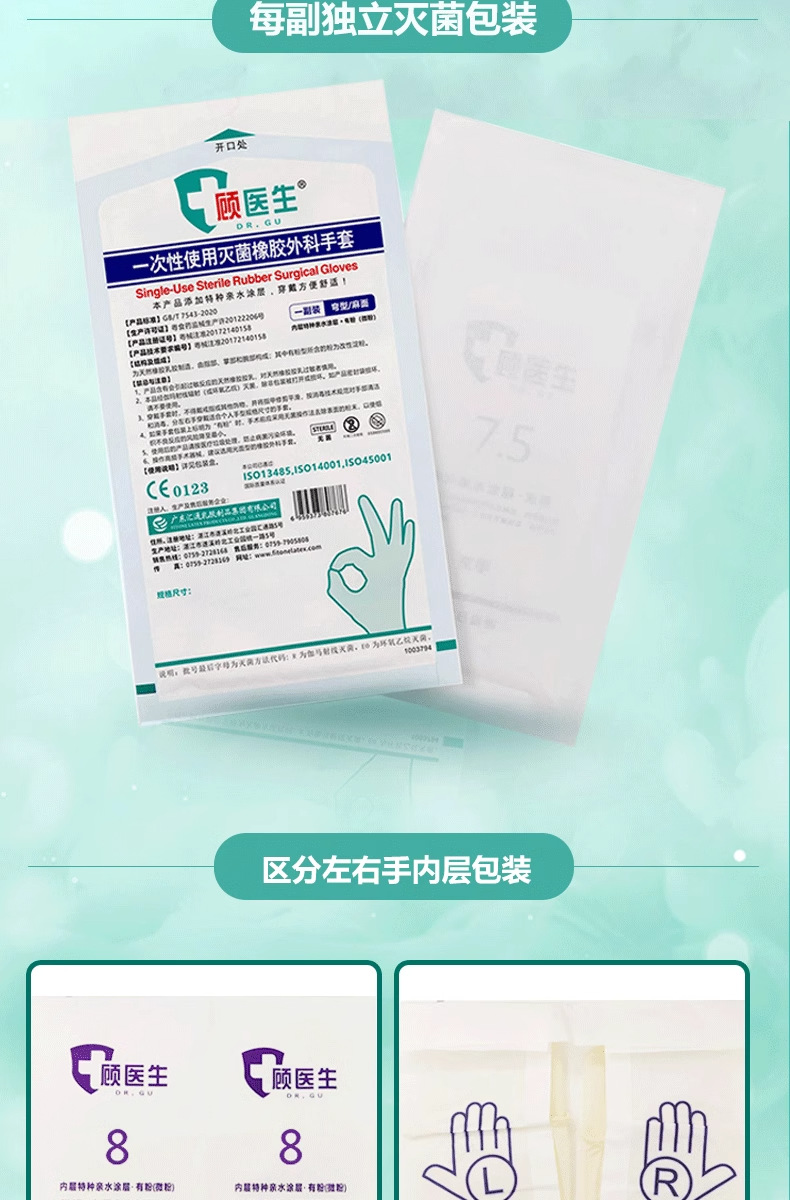 • (10쌍) 확장된 멸균 수술용 라텍스 *S 사이즈