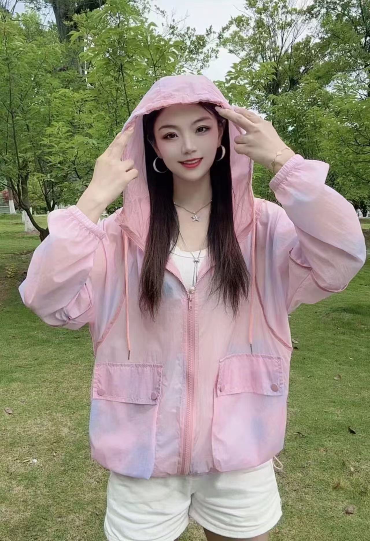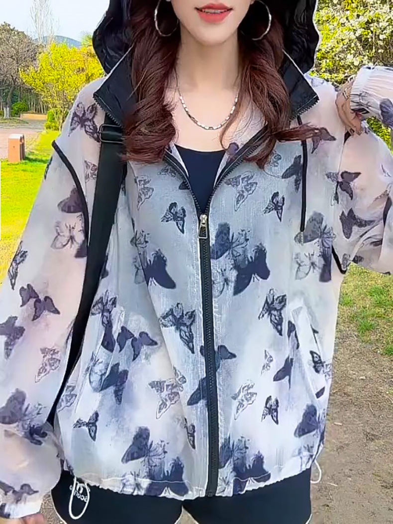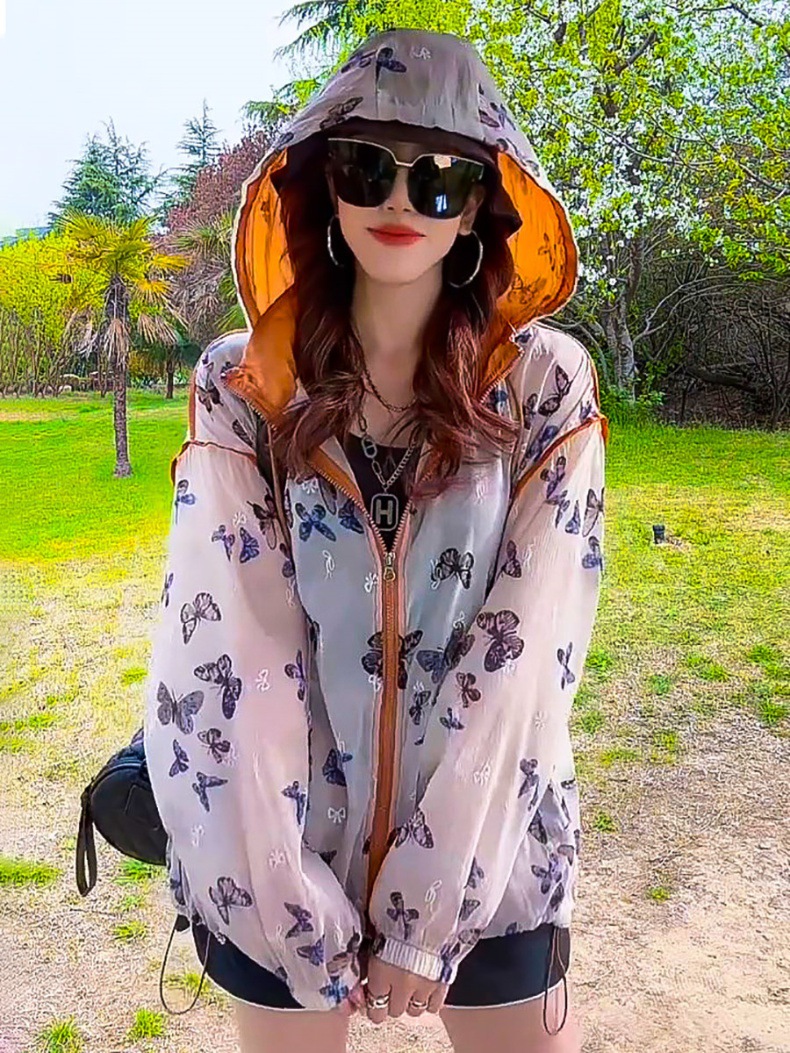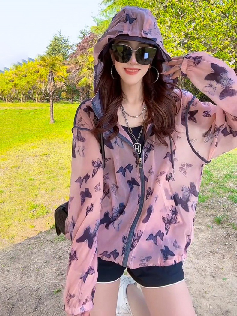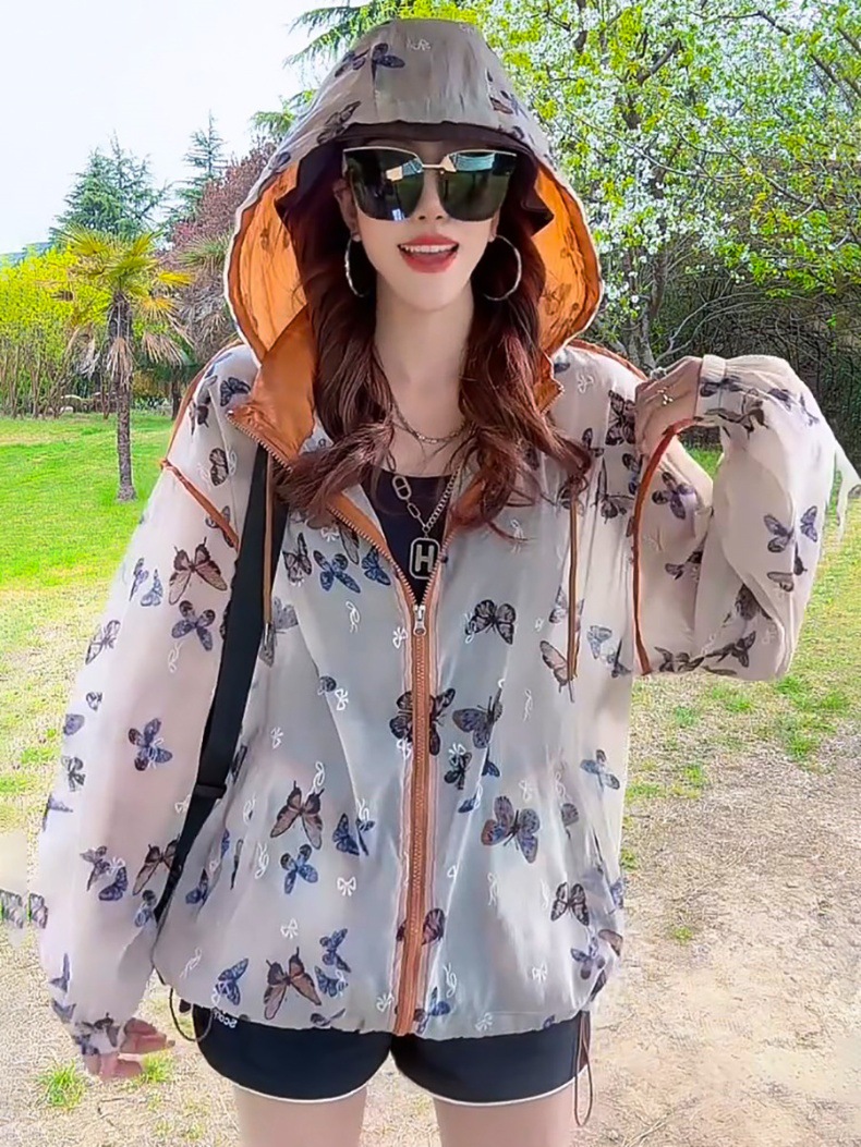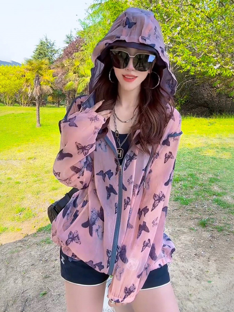 여성용 한국 스타일 아이스 실크 후드 자외선 차단 의류, 한국 스타일의 루즈하고 얇은 꽃무늬 카디건 탑, 캐주얼하고 다용도 재킷