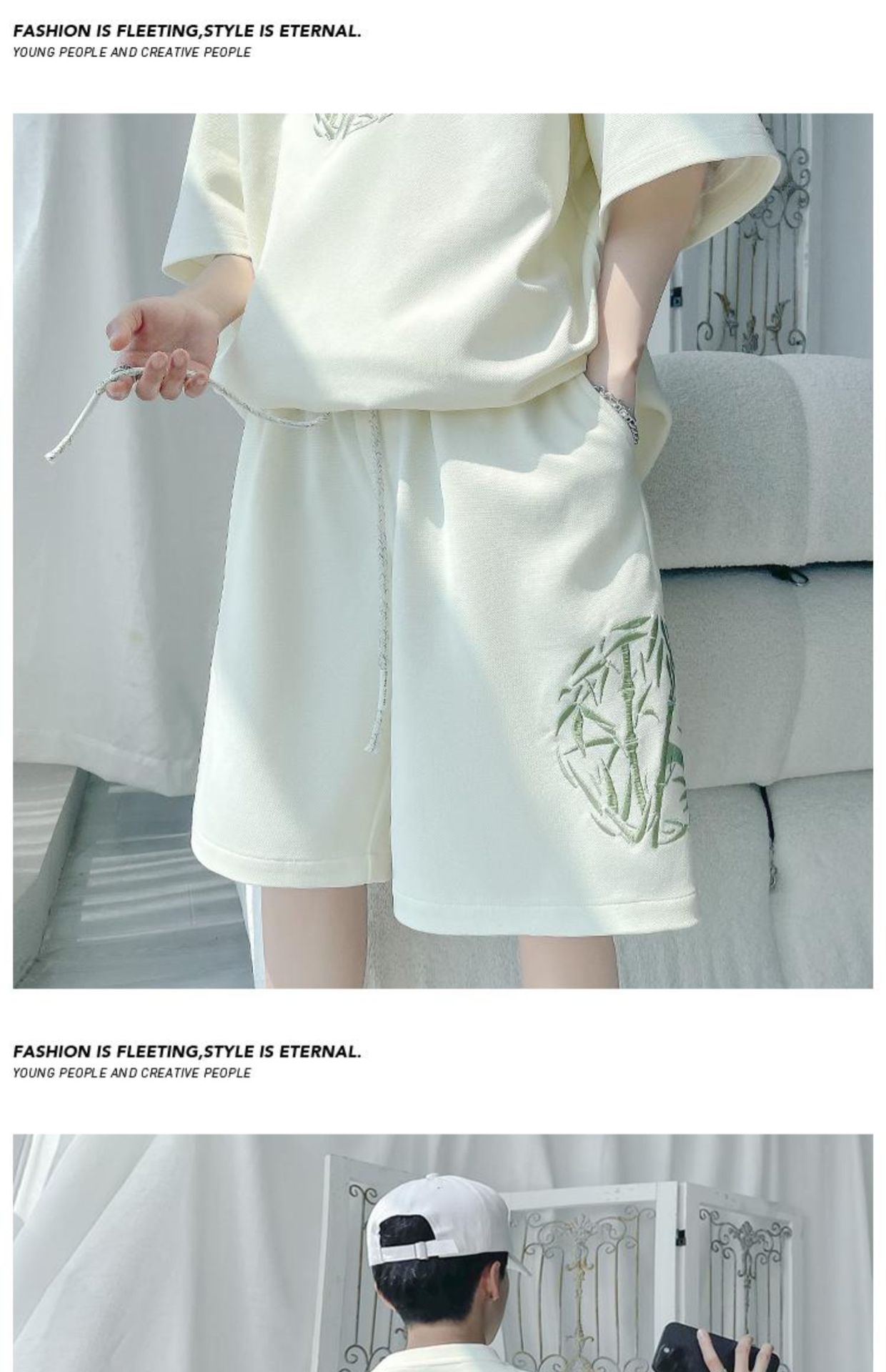 새로운 중국 스타일 국가 스타일 플러스 사이즈 아이스 실크 세트 남자 여름 느슨한 캐주얼 스포츠 반바지 반팔 티셔츠 투피스 세트스토어 가기