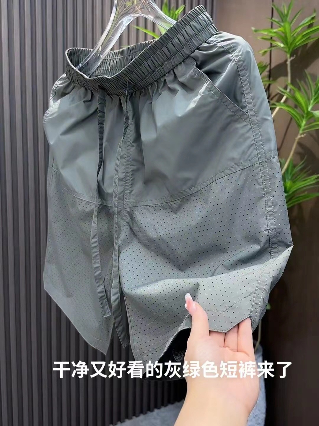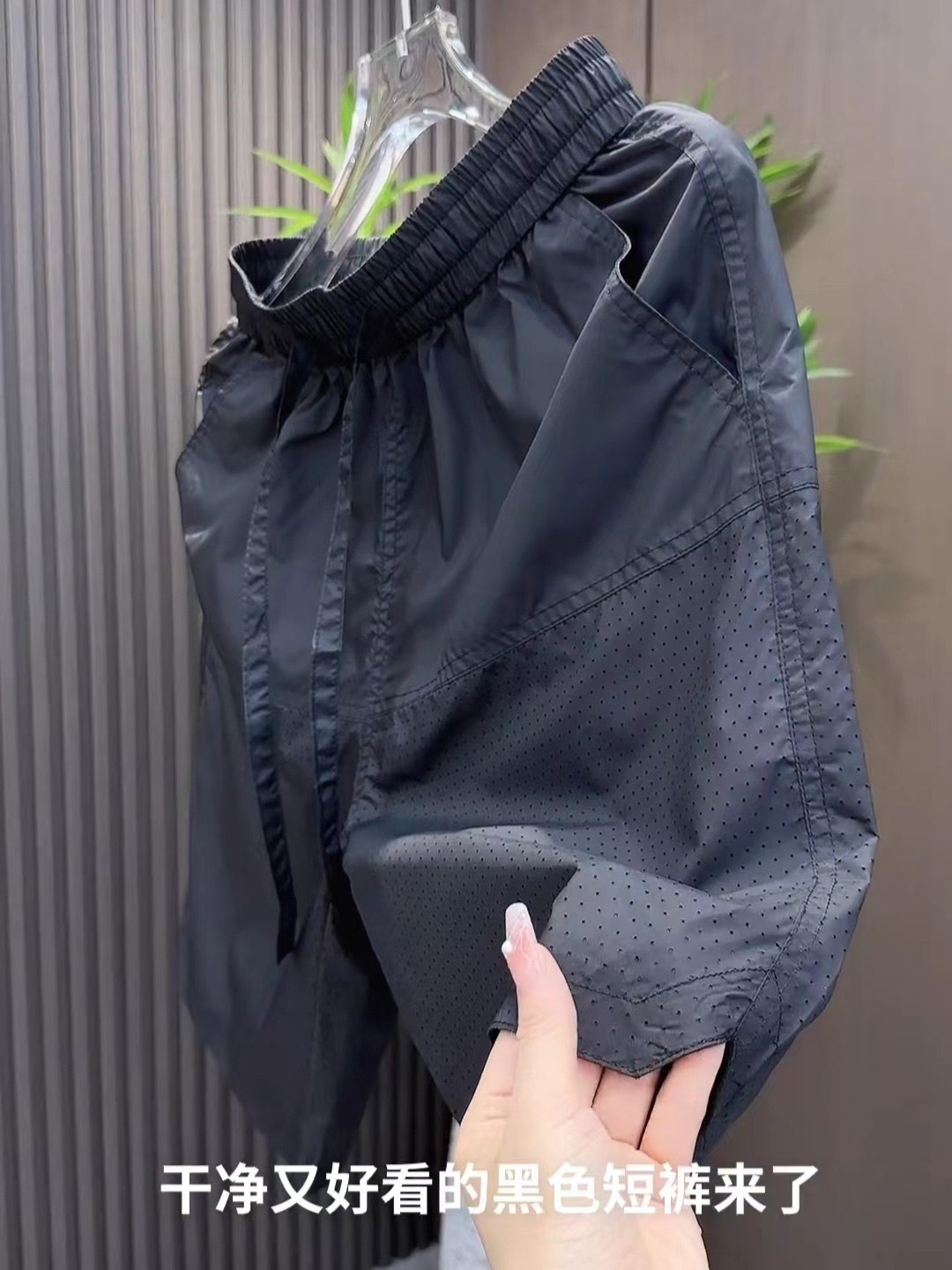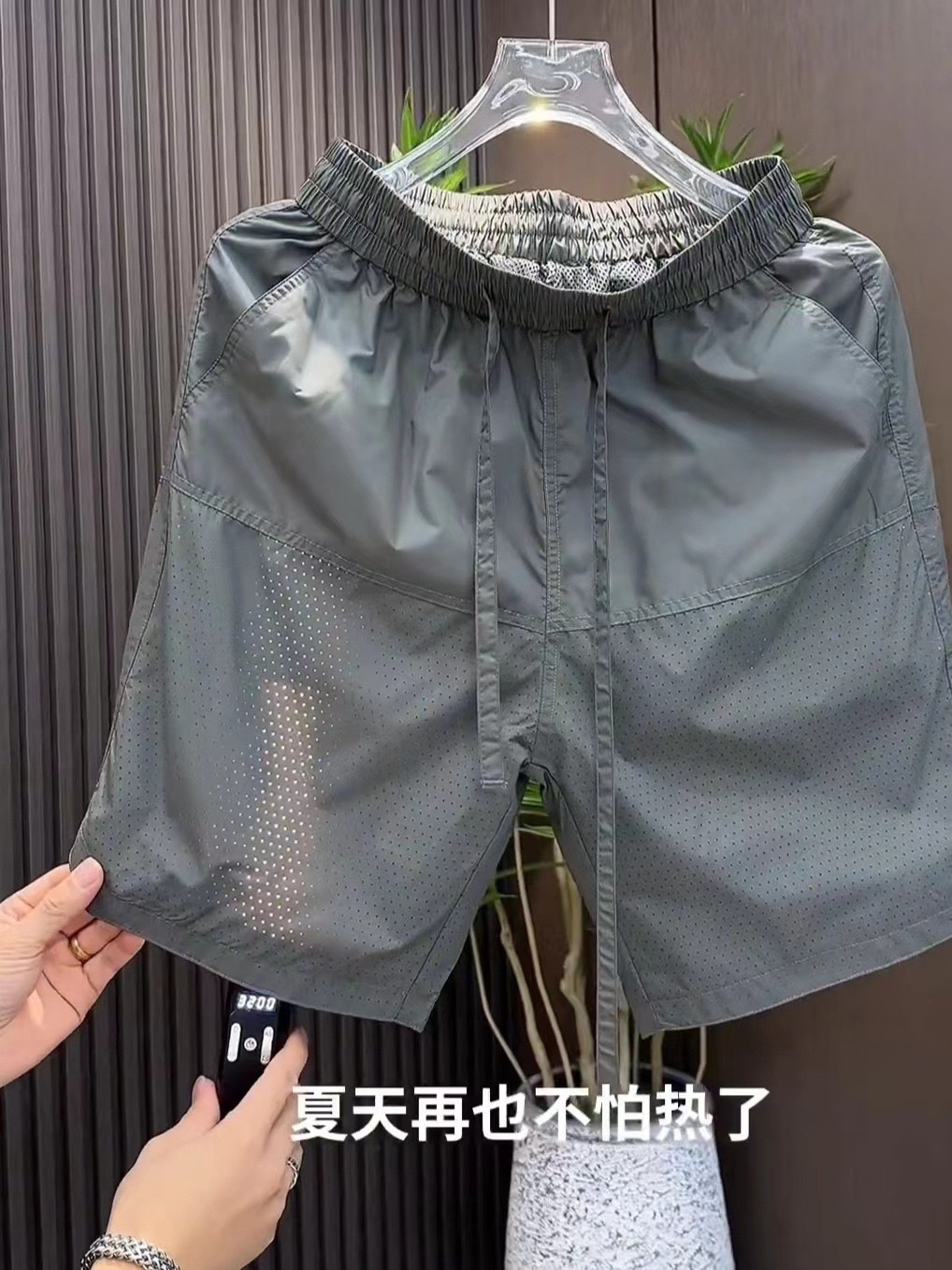 여름 새로운 레이저 천공 통기성 캐주얼 반바지 남자 스티칭 할로우 올 매치 루즈 퀵 드라이 아이스 실크 바지