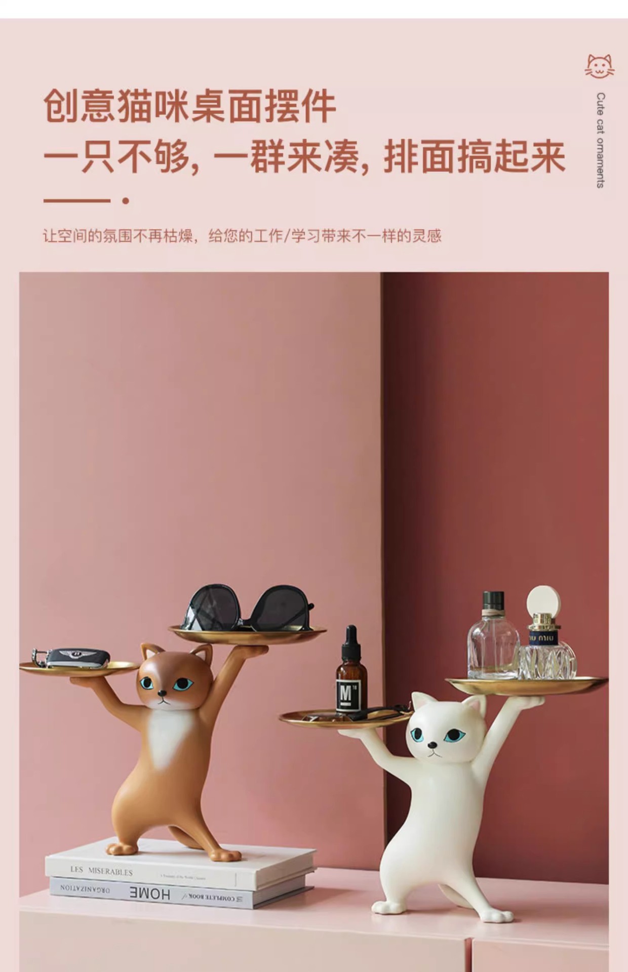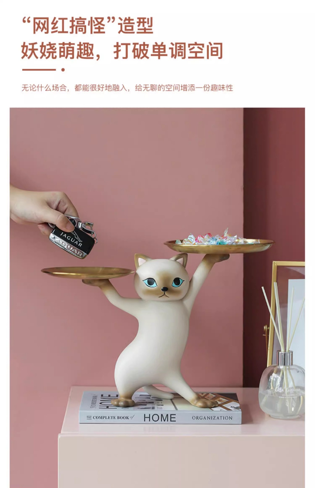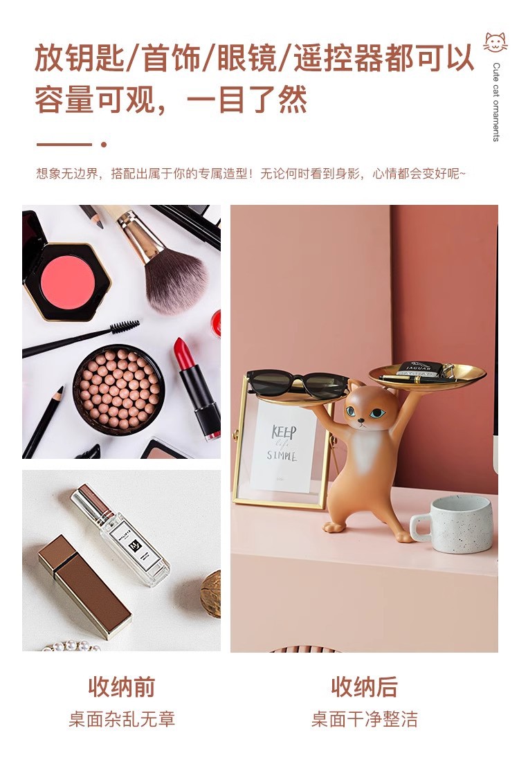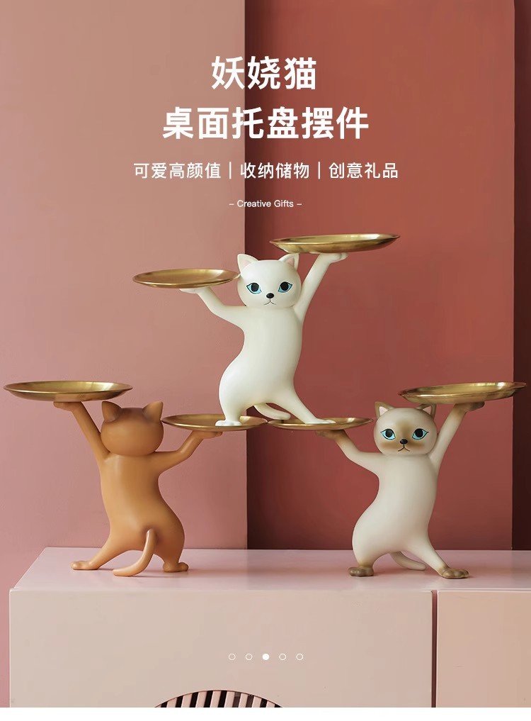 창조적 인 만화 모래 조각 매혹적인 고양이 장식품 거실 입구 키 보관 데스크탑 새 집 선물