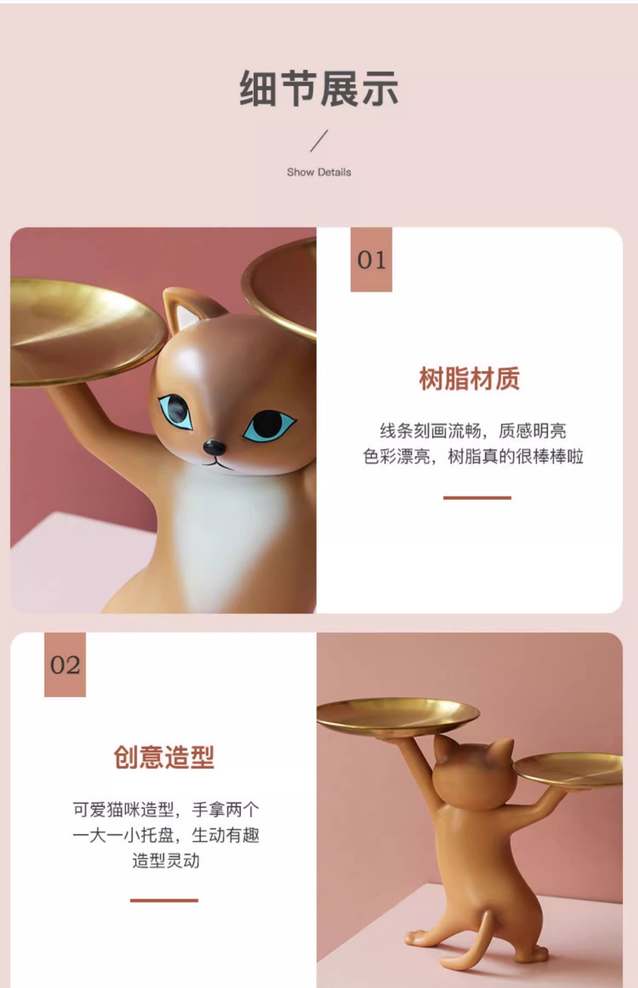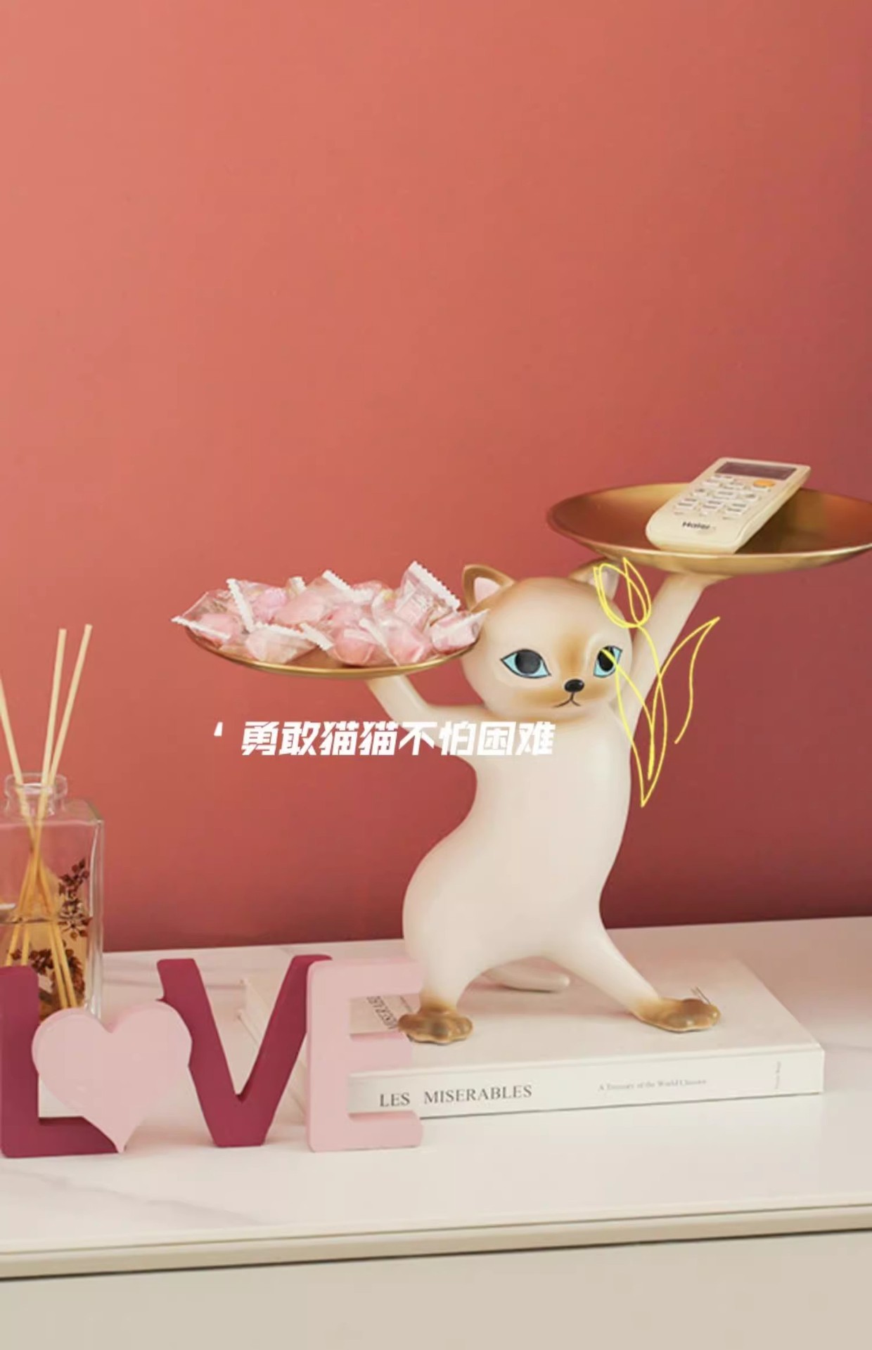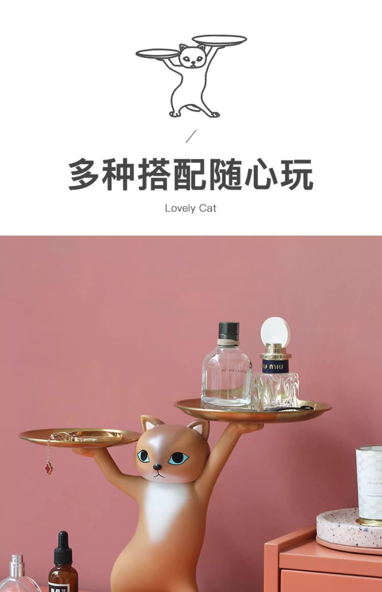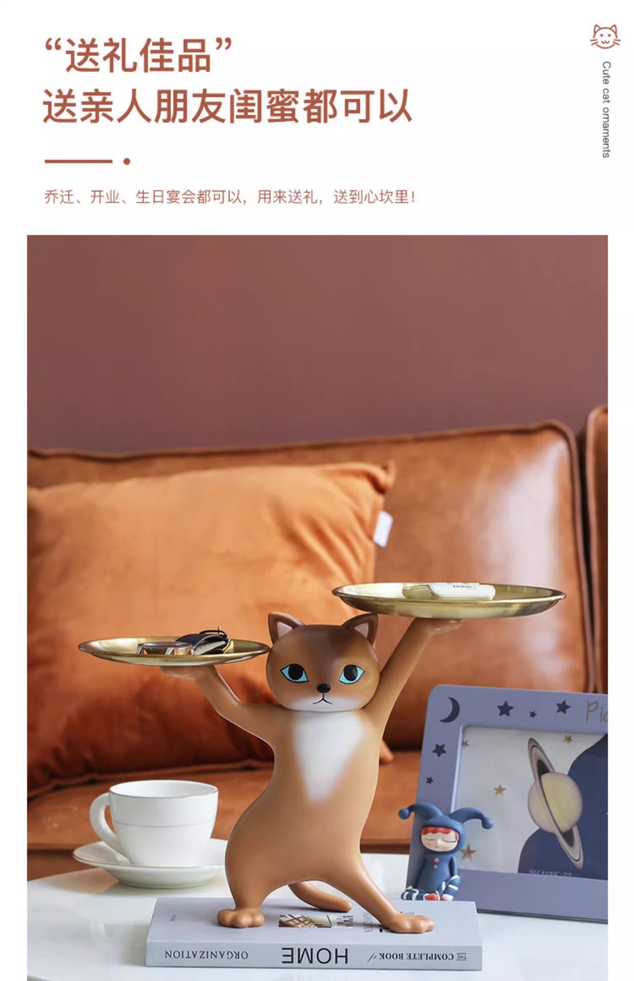 창조적 인 만화 모래 조각 매혹적인 고양이 장식품 거실 입구 키 보관 데스크탑 새 집 선물