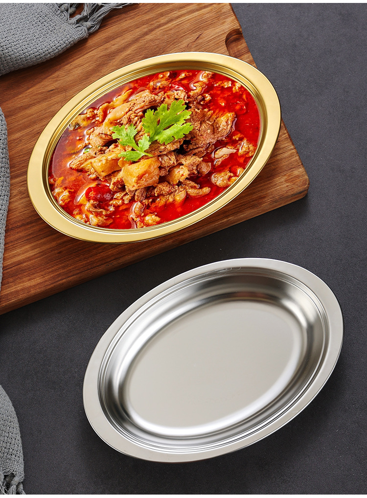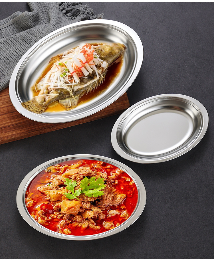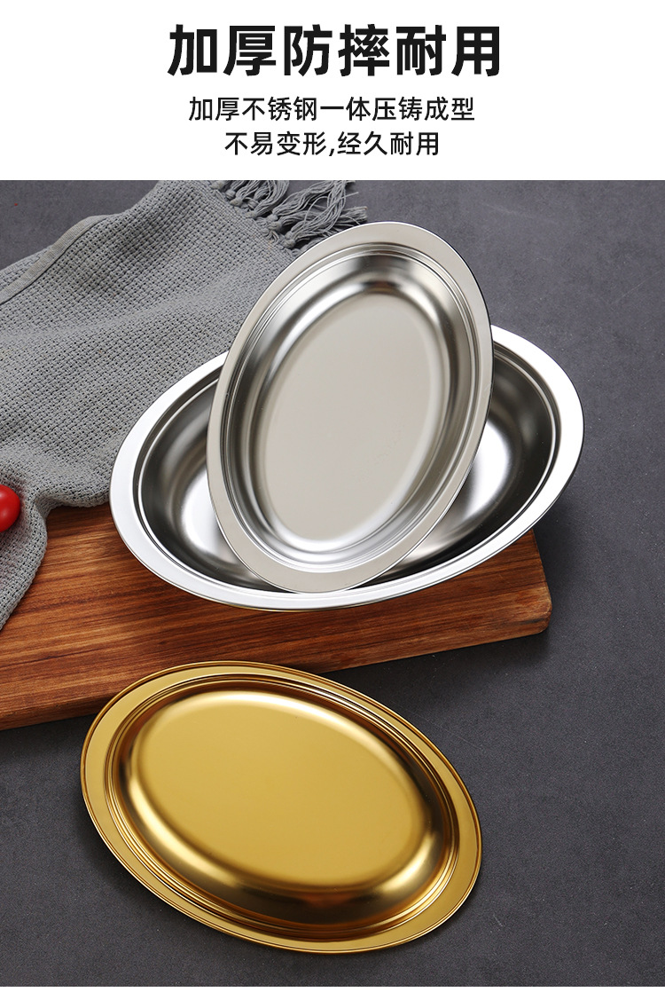 한국식 스테인레스 스틸 깊어진 타원형 플레이트 치즈 플레이트 찐 생선 스페셜 플레이트 미장판 두꺼운 계란 모양 판스토어 가기