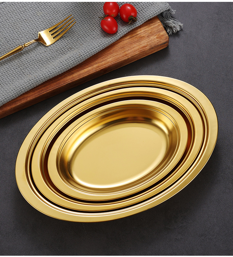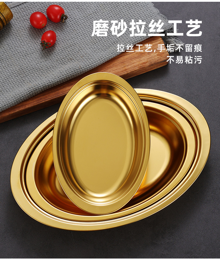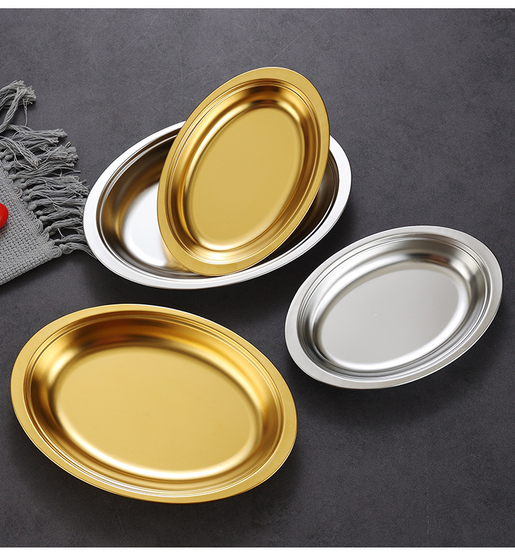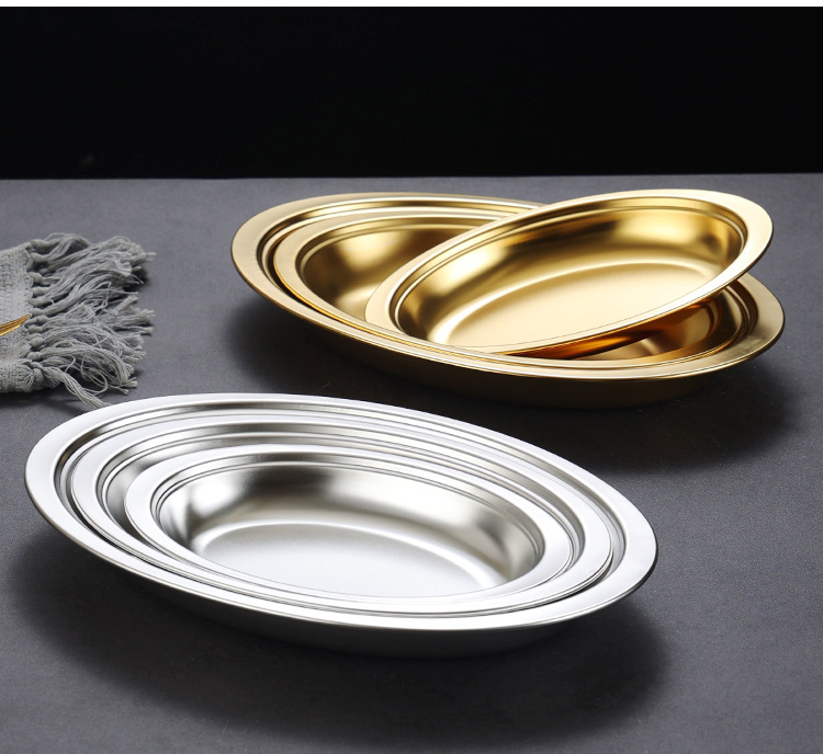 한국식 스테인레스 스틸 깊어진 타원형 플레이트 치즈 플레이트 찐 생선 스페셜 플레이트 미장판 두꺼운 계란 모양 판