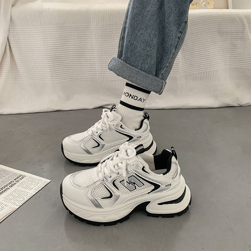 두꺼운 밑창 토르 신발 여자 2024 년 여름 새로운 소프트 밑창 경량 올매치 통기성 메쉬 러닝 캐주얼 운동화